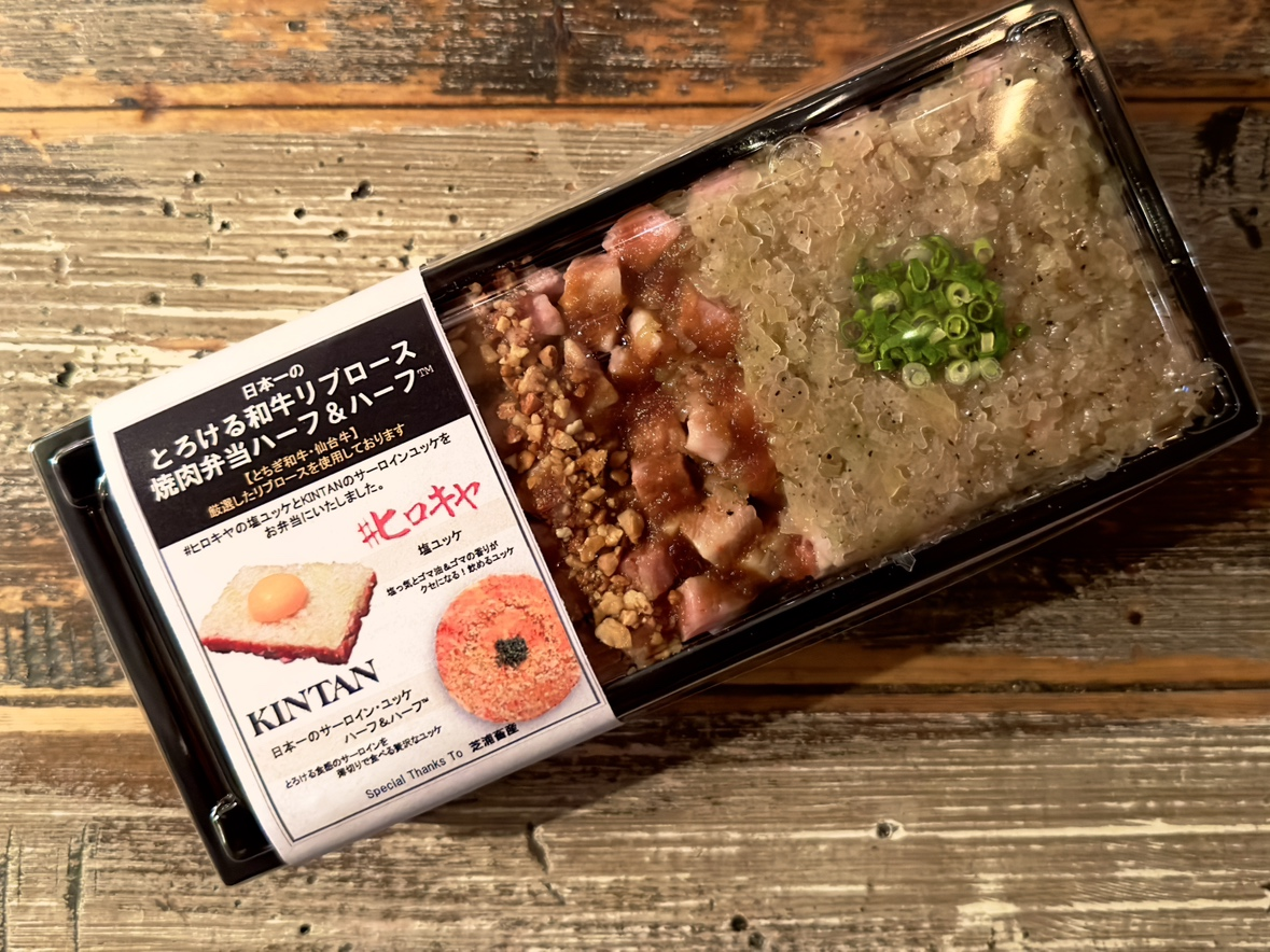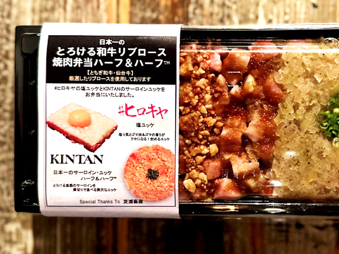 #ヒロキヤの塩ユッケと焼肉KINTANのサーロイン・ユッケハーフ&ハーフ™をお弁当にいたしました。
