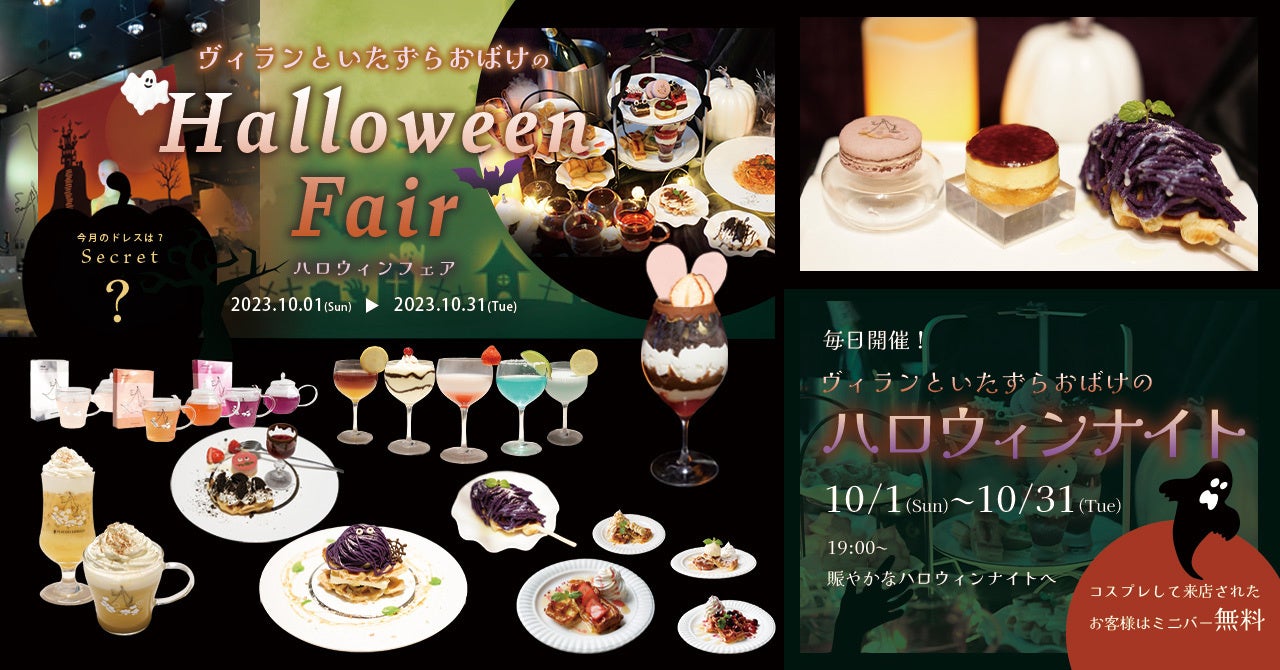 「PLACOLE&DRESSY」プロデュースカフェ名古屋・鎌倉の2店舗で、ヴィランといたずらおばけのハロウィンフェアを開催。