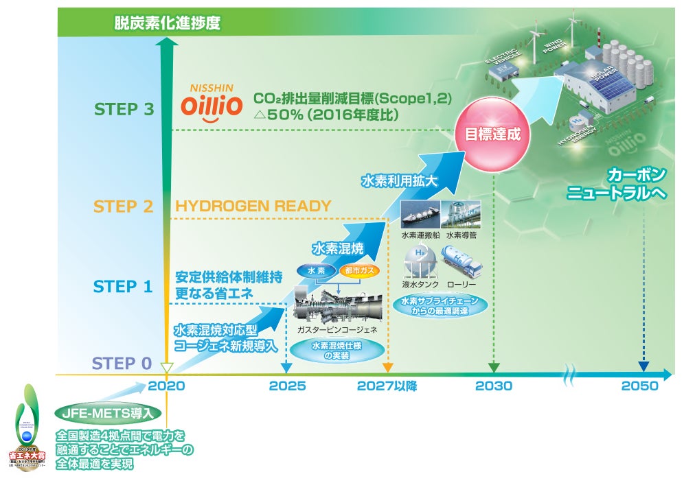 また、中長期的な更なるエネルギーの安定供給と日清オイリオの2030年のCO2排出量削減目標(2016年度比△50%)達成を目指して両社で検討を重ねた結果、このたび、将来の水素活用に向け、JFEエンジニアリングが本コージェネ設備を設置のうえ、設備の所有・維持運営を行うことで合意し、2025年4月の運用開始を目指します。