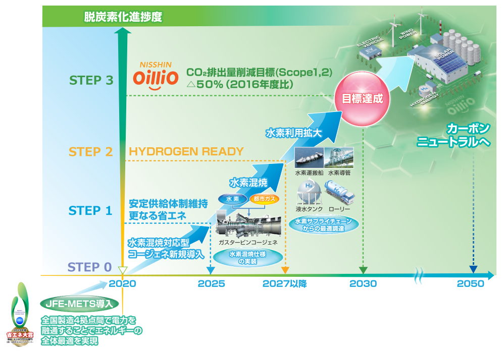 また、中長期的な更なるエネルギーの安定供給と日清オイリオの2030年のCO2排出量削減目標(2016年度比△50%)達成を目指して両社で検討を重ねた結果、このたび、将来の水素活用に向け、JFEエンジニアリングが本コージェネ設備を設置のうえ、設備の所有・維持運営を行うことで合意し、2025年4月の運用開始を目指します。