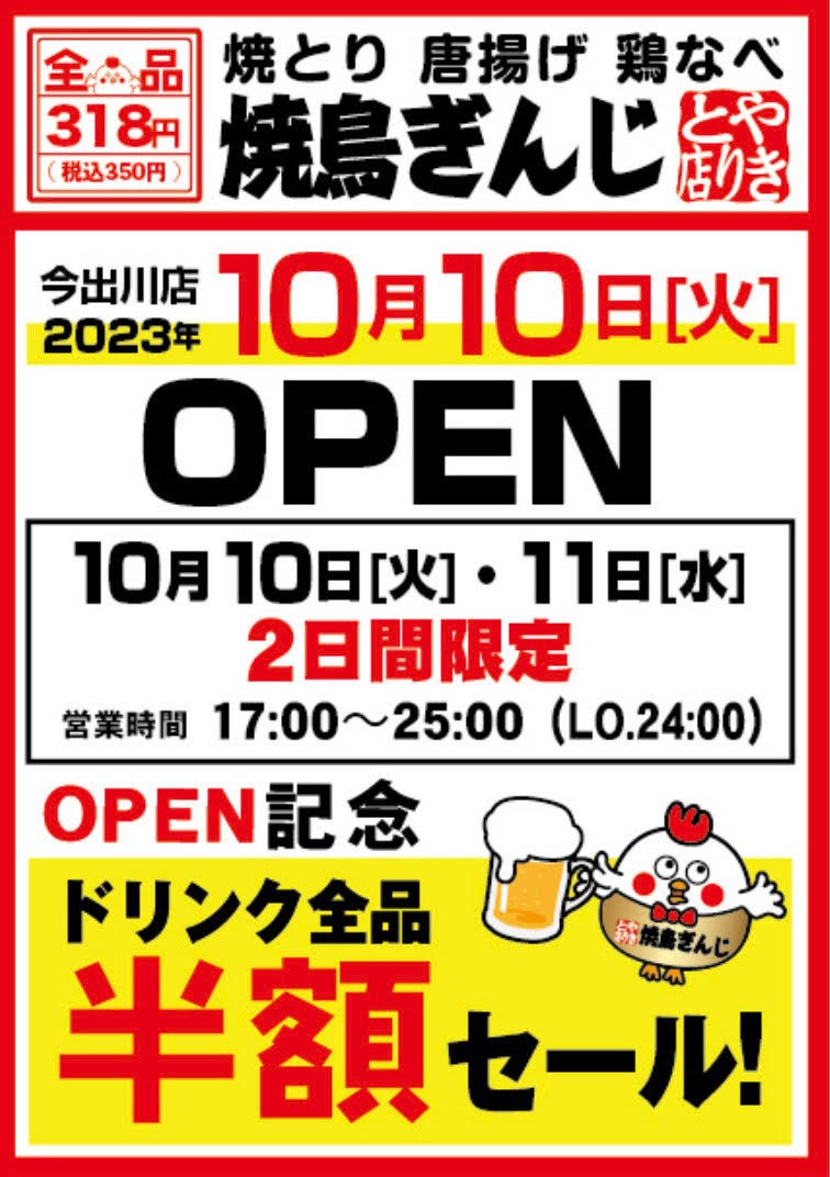 ☆2日間限定☆OPENイベントは10月10日(火)開店2日間限定にてドリンク全品半額!159円(税込175円)キャンペーンを開催します!