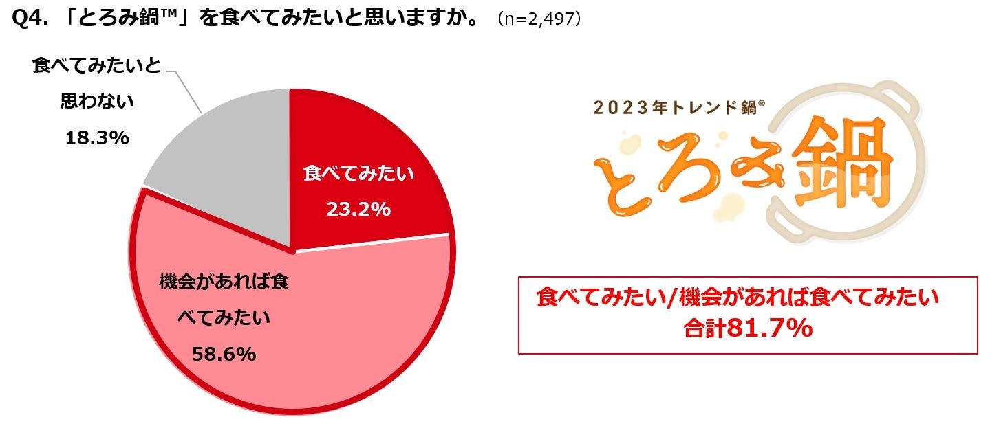 ・8割の人が“とろみ鍋™“を「食べてみたい/機会があれば食べてみたい」と回答。