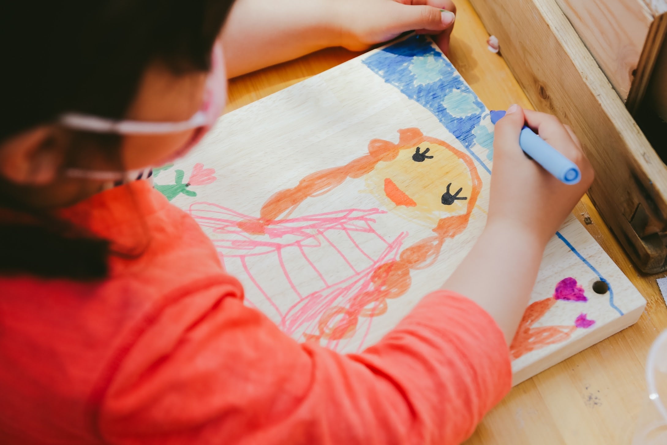 田中工務店が建てる木の家から出た端材を使ったお絵描き。
