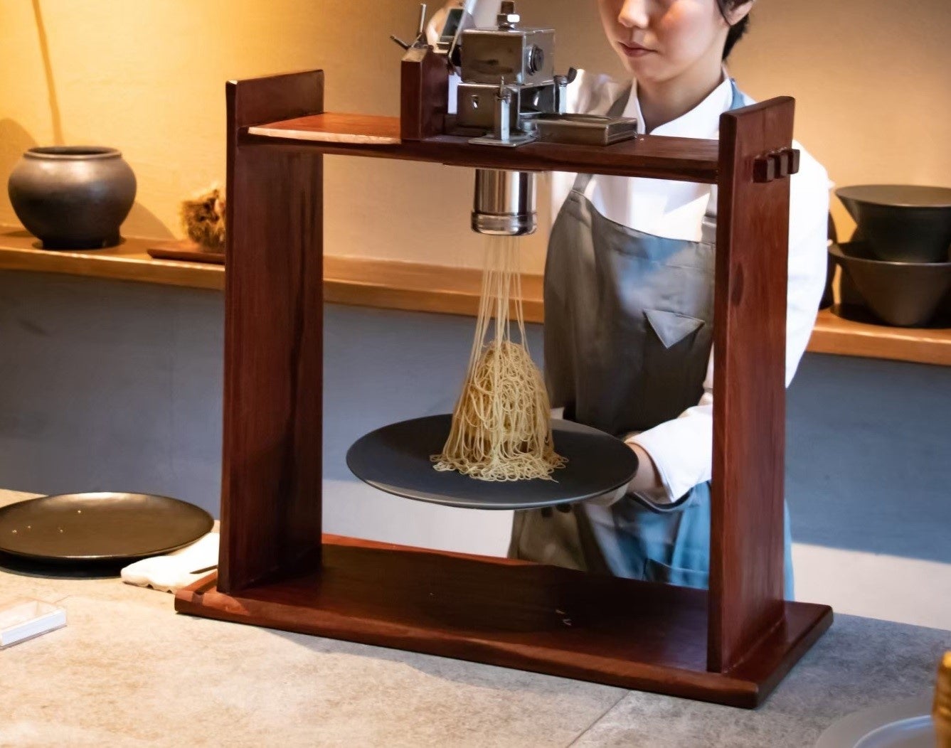 オーダーを受けてから、お客さまの目の前で錦糸のように繊細な様が印象的なモンブランをお作りするカフェスタイルのお店です。使用する栗は大粒で甘味が豊かな京丹波産と、その他地域で獲れる品質の良い国産栗。