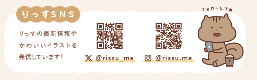 ポップアップストア期間中にりっすの公式SNS(X/Instagram)のフォロー画面を直営店スタッフにご提示いただくと、りっすの特製ステッカーをプレゼントいたします。