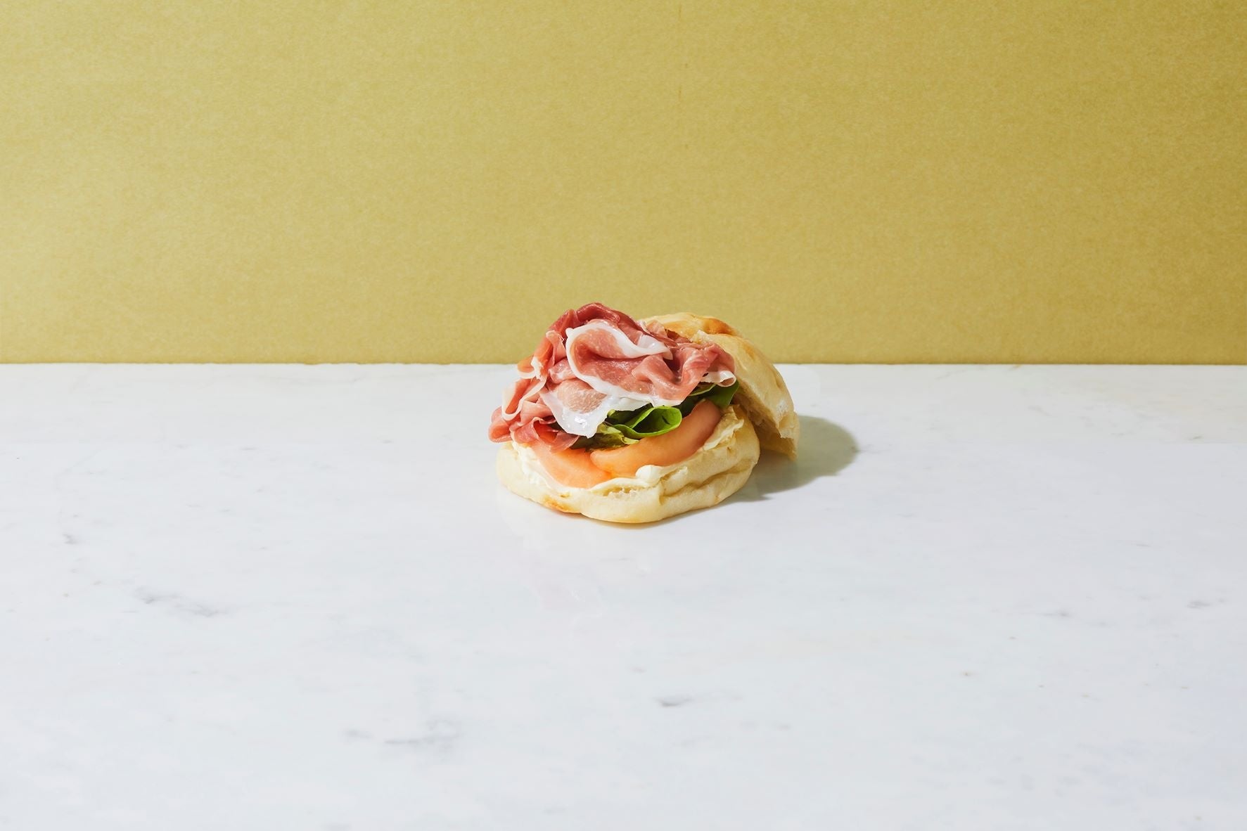 オリジナルのフォカッチャに香り豊かな生ハムと新鮮野菜をサンドし、パルミジャーノソースで