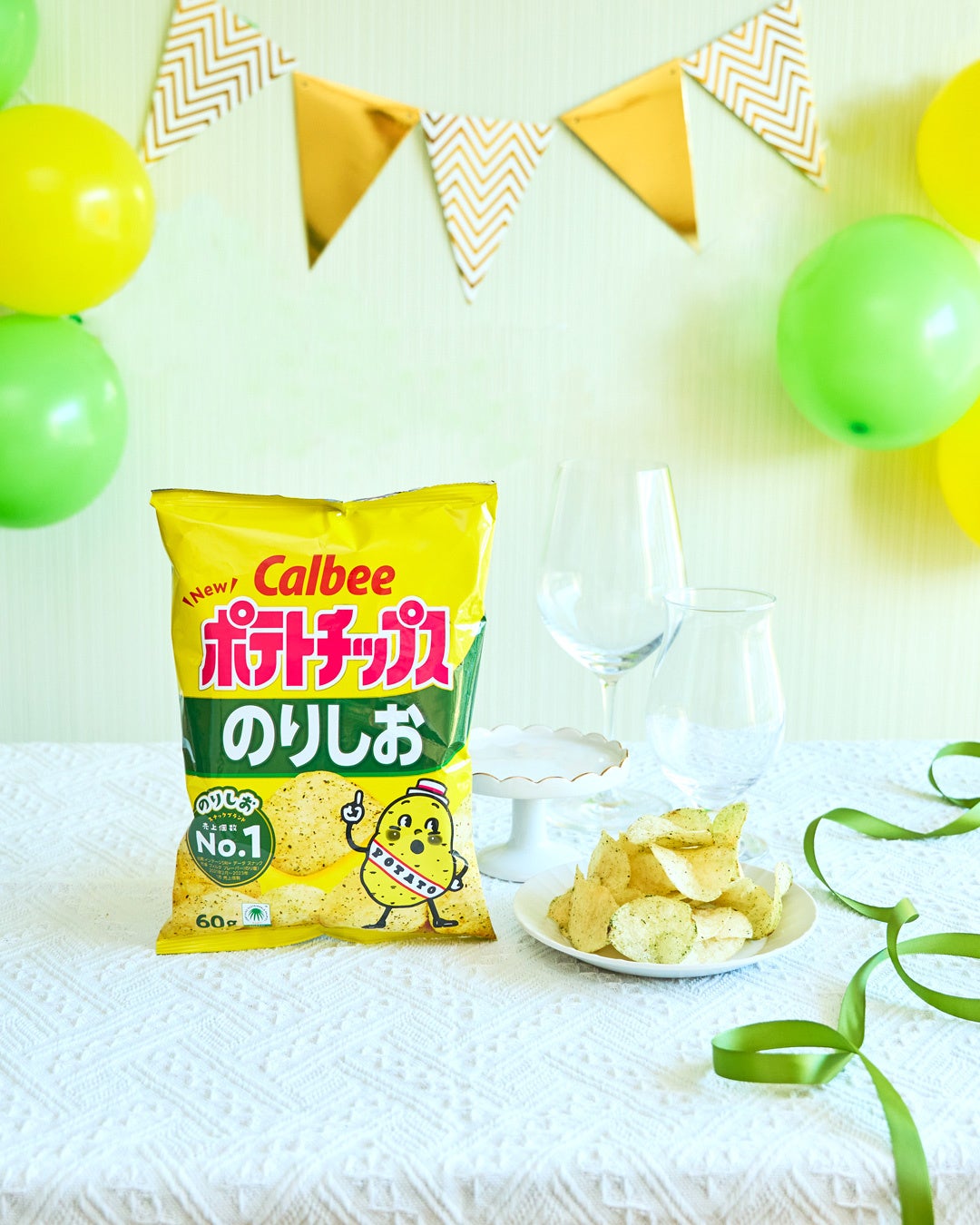 ●『ポテトチップス のりしお』は、1976年に発売したロングセラー商品です。風味豊かな青のりとあおさ、それを引き立てる塩味・旨みの絶妙なバランスが楽しめます。