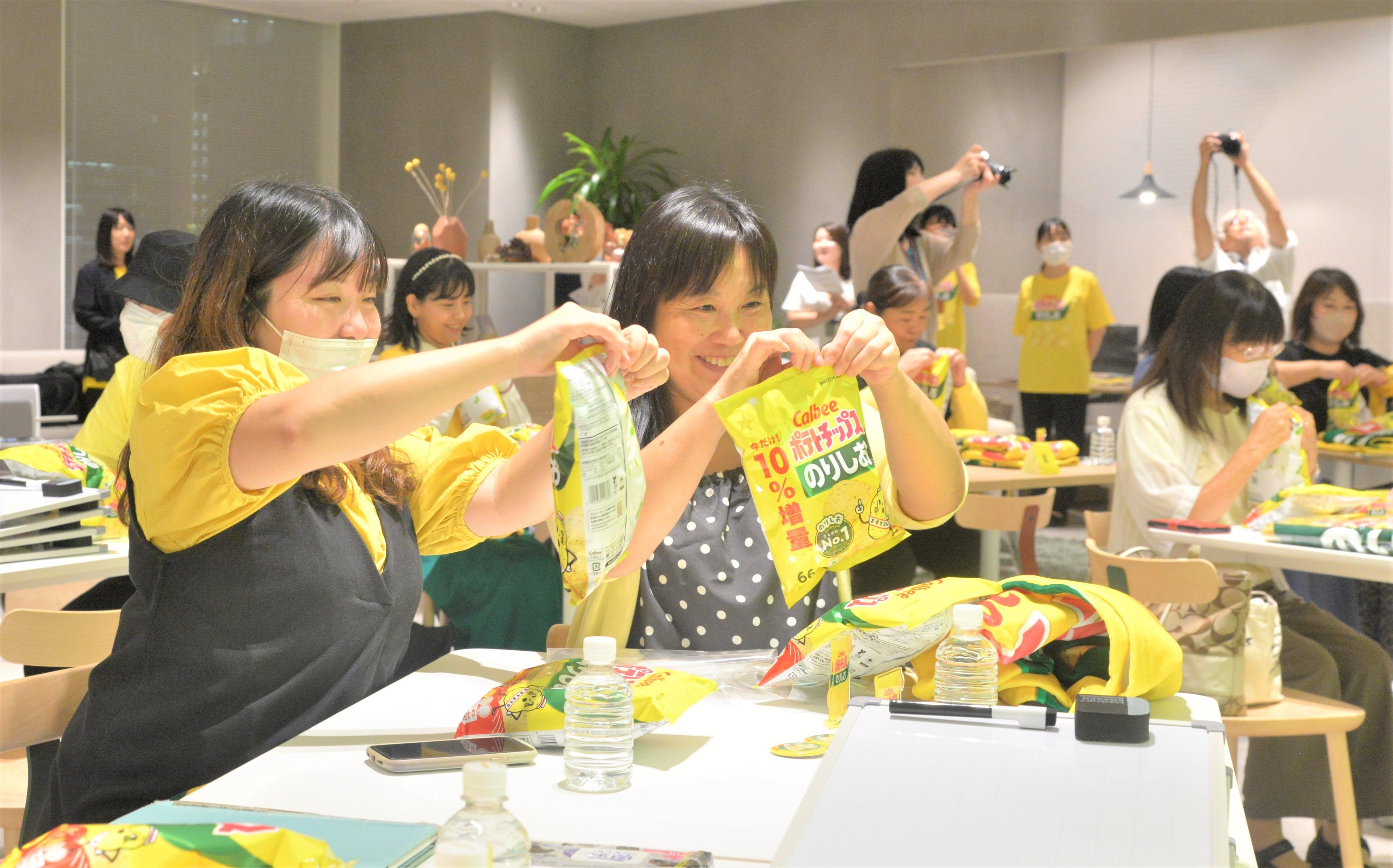 当日は、「のりしお」ファン約30人が参加。2023年9月25日(月)に全国でリニューアル発売する「ポテトチップス のりしお」の先行試食や、リニューアルする「のりしお」をPRする文章を検討するグループワーク、クイズなどを楽しみました。グループワークで考えたPR文章の一部は、カルビーPR部公式X(旧Twitter)アカウント上で実際に投稿する予定です。
