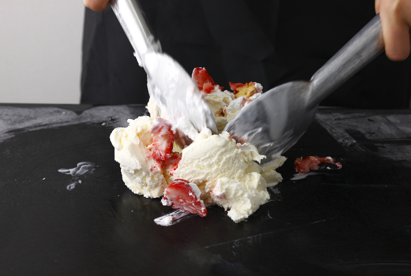 コールド・ストーン・クリーマリー(又は、コールドストーン)は、1988年アメリカで誕生した体験型アイスクリームブランドです。ご注文をいただいてから、アイスクリームとナッツやフルーツなどのお好きなミックスイン(トッピングの呼称)を、 “-9℃” に冷やした石板の上で混ぜ合わせ、お客様だけの 「オリジナルアイスクリーム」 をご提供します。ブランド最大の特長として、お客様に 「ハッピーなひと時」 をお過ごしいただけるよう、クルー(従業員)たちが心を込めた “接客” と、目の前で商品を仕上げるパフォーマンス(リクエストに応じた “歌” のサービス)でおもてなしいたします。 “歌” のサービスは、お客様のご希望・ご気分に合わせて対応しますので、お気軽にクルーまでお声がけください。