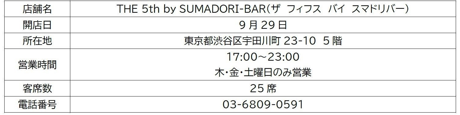 『THE 5th by SUMADORI-BAR』は、酔わなくても楽しめる“新しい大人の嗜好品”を提供するバーです。野菜や果物、スパイスを掛け合わせることでさまざまな味や香りが楽しめる20種類以上のドリンクと、ドリンクに合わせた食事を揃えました。ピーコックブルーをベースとし、中央に大きなバーカウンターを設置することで、バーテンダーとの会話を落ち着いて楽しめます。店名の「THE 5th」には“5階”にあり“五感”で楽しめる新しい居心地の良い場所“5th place”という意味が込められています。会員制システムを取り入れ、会員同士や会員と店舗が双方向で交流できるオンラインチャットを開設し、直接コミュニケーションを図ることで、お客さまの声を新たなメニュー開発や店舗の運営に活用します。