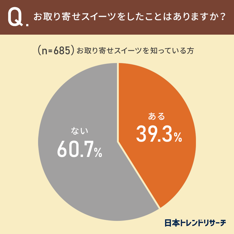 39.3%の方が「お取り寄せスイーツをしたことがある」と回答しています。