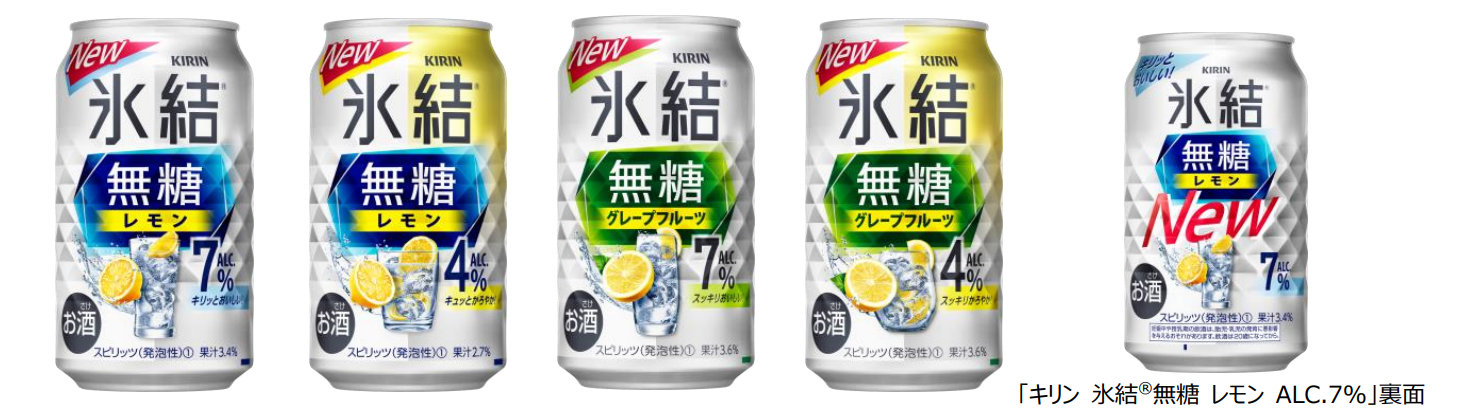 今回、リニューアルする「キリン 氷結®無糖 レモン」(ALC.7%、ALC.4%)、「キリン 氷結®無糖 グレープフルーツ」(ALC.7%、ALC.4%)は、現行品から味覚評価の向上を実現※5しました。また、パッケージは、「クリアで透明感のあるイメージ」「目につきやすさ」「見分けやすさ」はそのままに、リニューアル切り替え期には「New」マークを両面に付与することで、新しくなったことが一目で分かるように存在感を高めました。