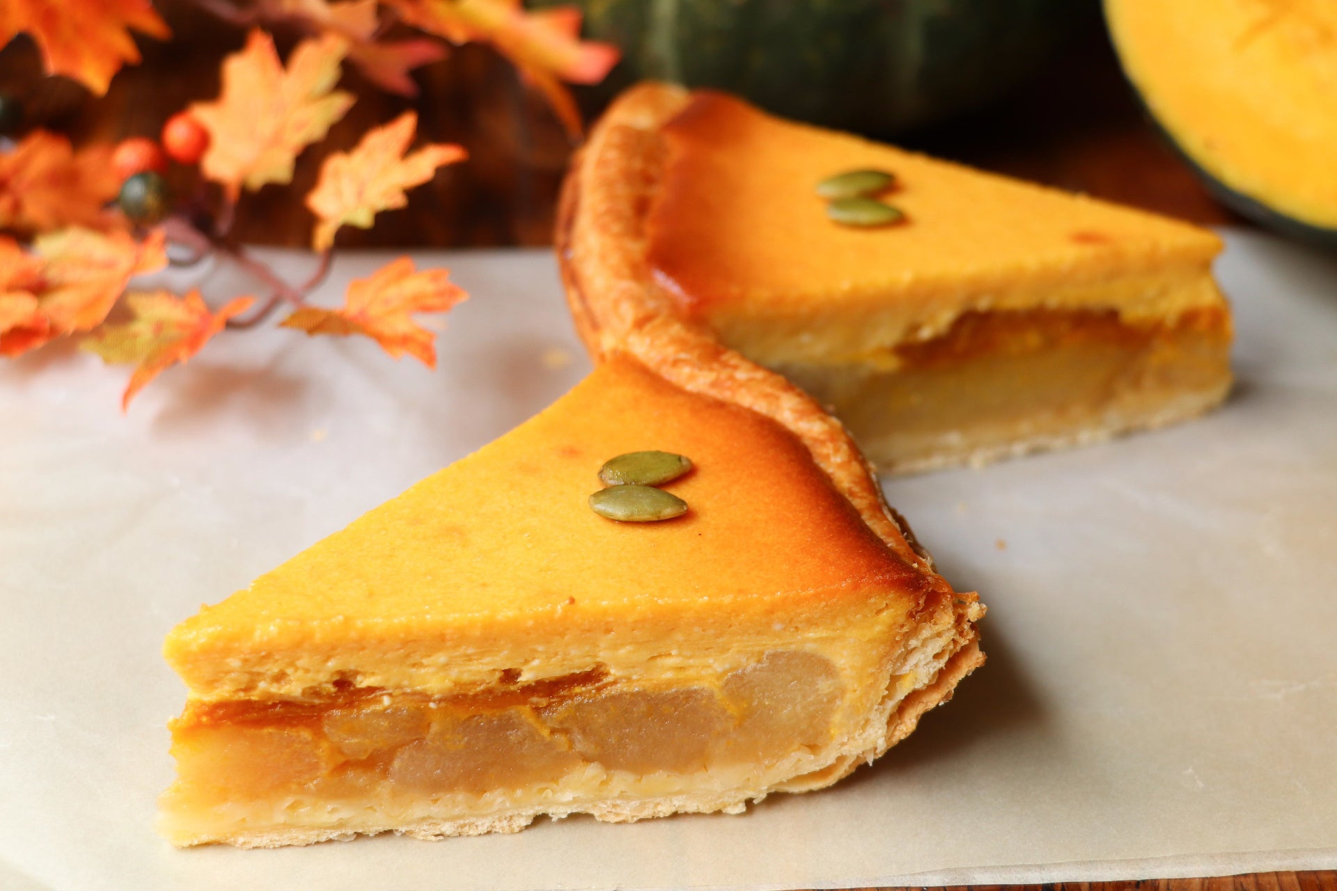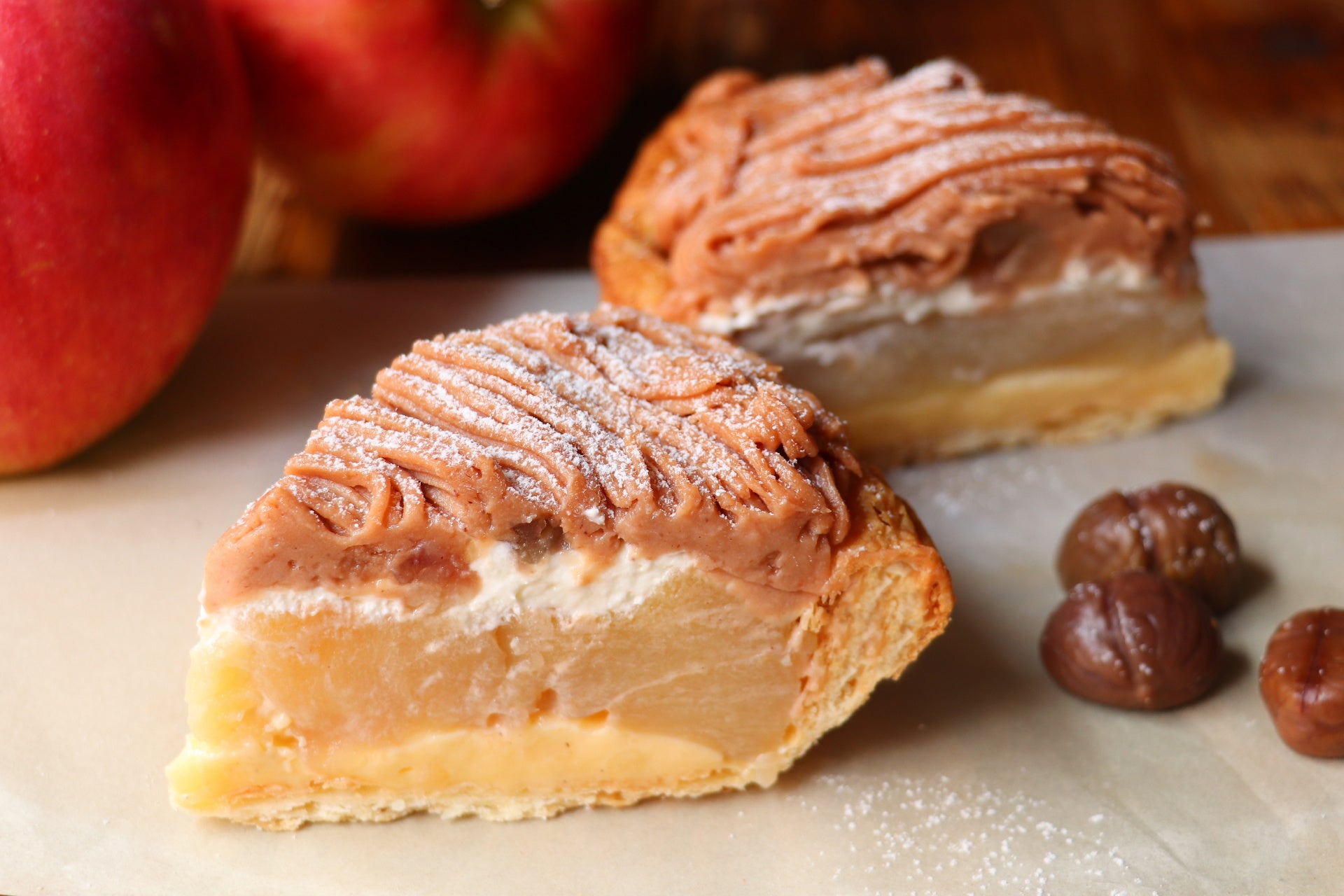旬の北海道産えびすかぼちゃをあわせたチーズケーキに、かぼちゃペーストを重ねて、りんごと一緒に焼き上げた“かぼちゃ”づくしのアップルパイ。かぼちゃ本来の濃厚な甘みにチーズケーキのコクのある風味が重なる、温めても冷やしても美味しいアップルパイです。