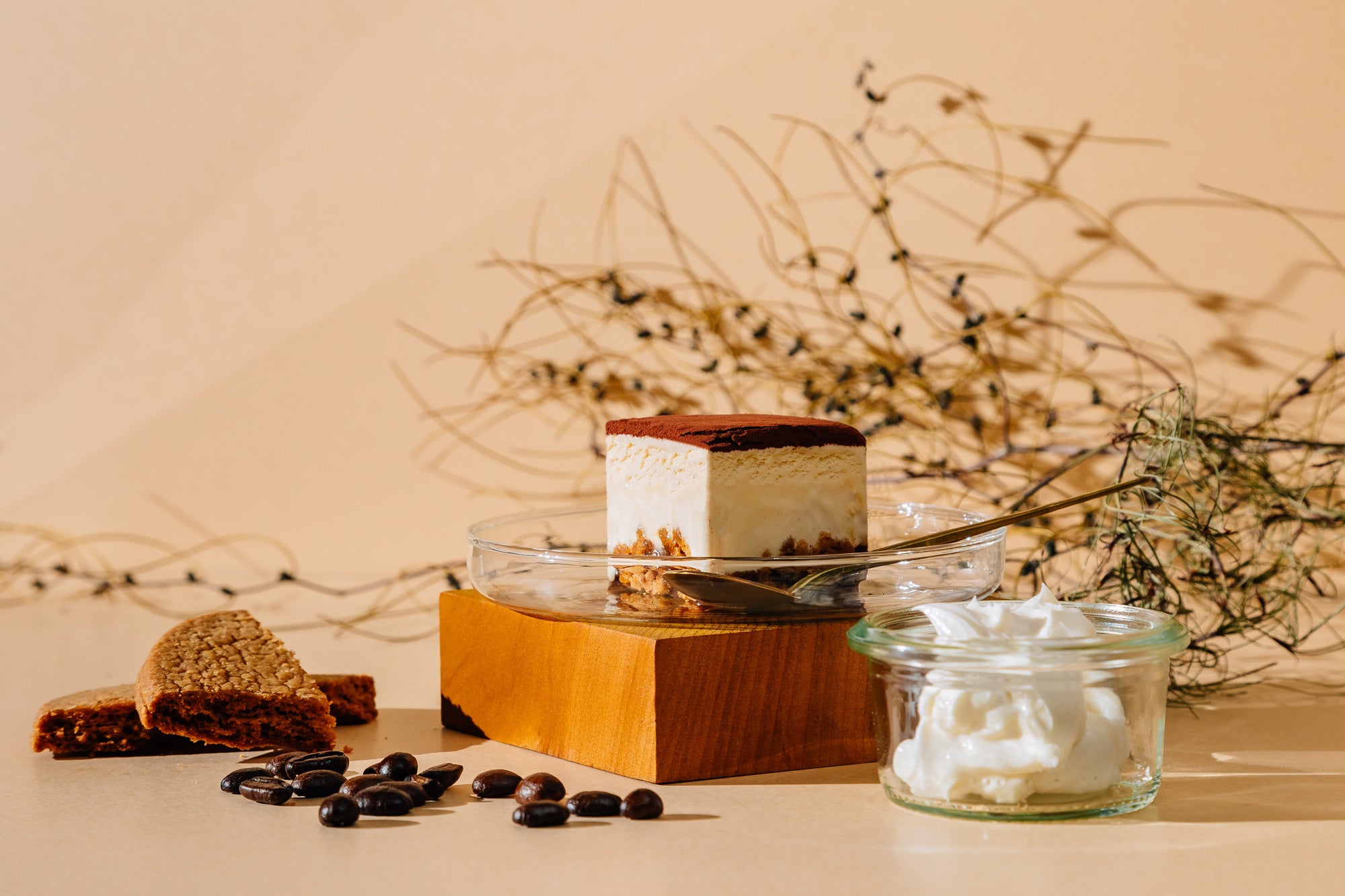 イタリアンドルチェの代表とも言えるティラミス。わたしたちがイメージしたのはしっかりしたチーズ感と、なめらかでもったり重厚感のあるボディ。そしてもちろん無添加であること。デンマーク産の濃厚チーズを使い、マルサラワインやオーガニックバニラで香りづけしたチーズアイスに、自家製コーヒーシロップを染み込ませたクッキー、ヴァローナ社のカカオパウダーを上から振りかければ完成です。秋に食べたい濃厚ティラミスアイス、ぜひご賞味ください。
