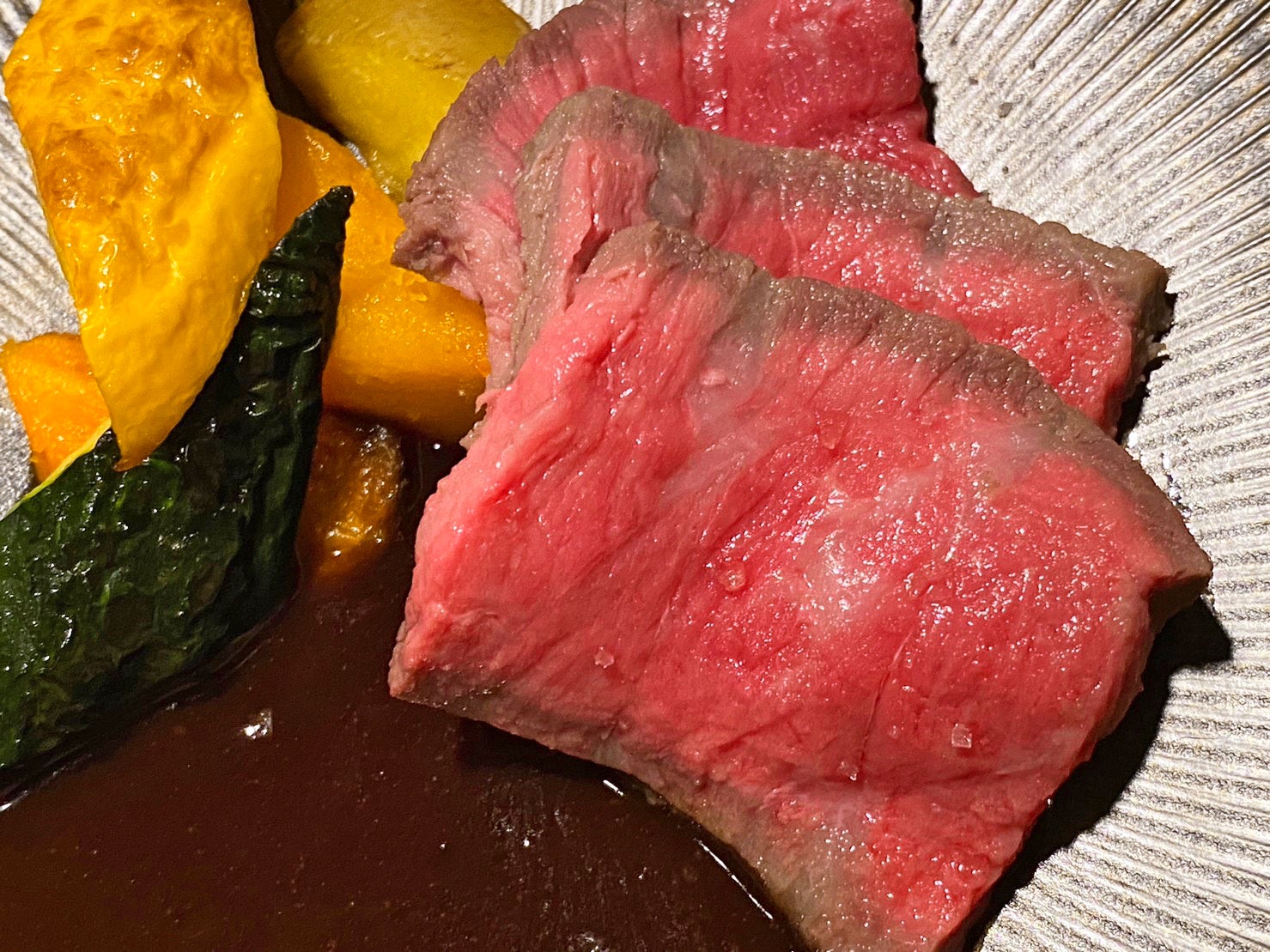 KOBE BEEFのローストビーフ わさびと赤ワインのソースで ¥1760-