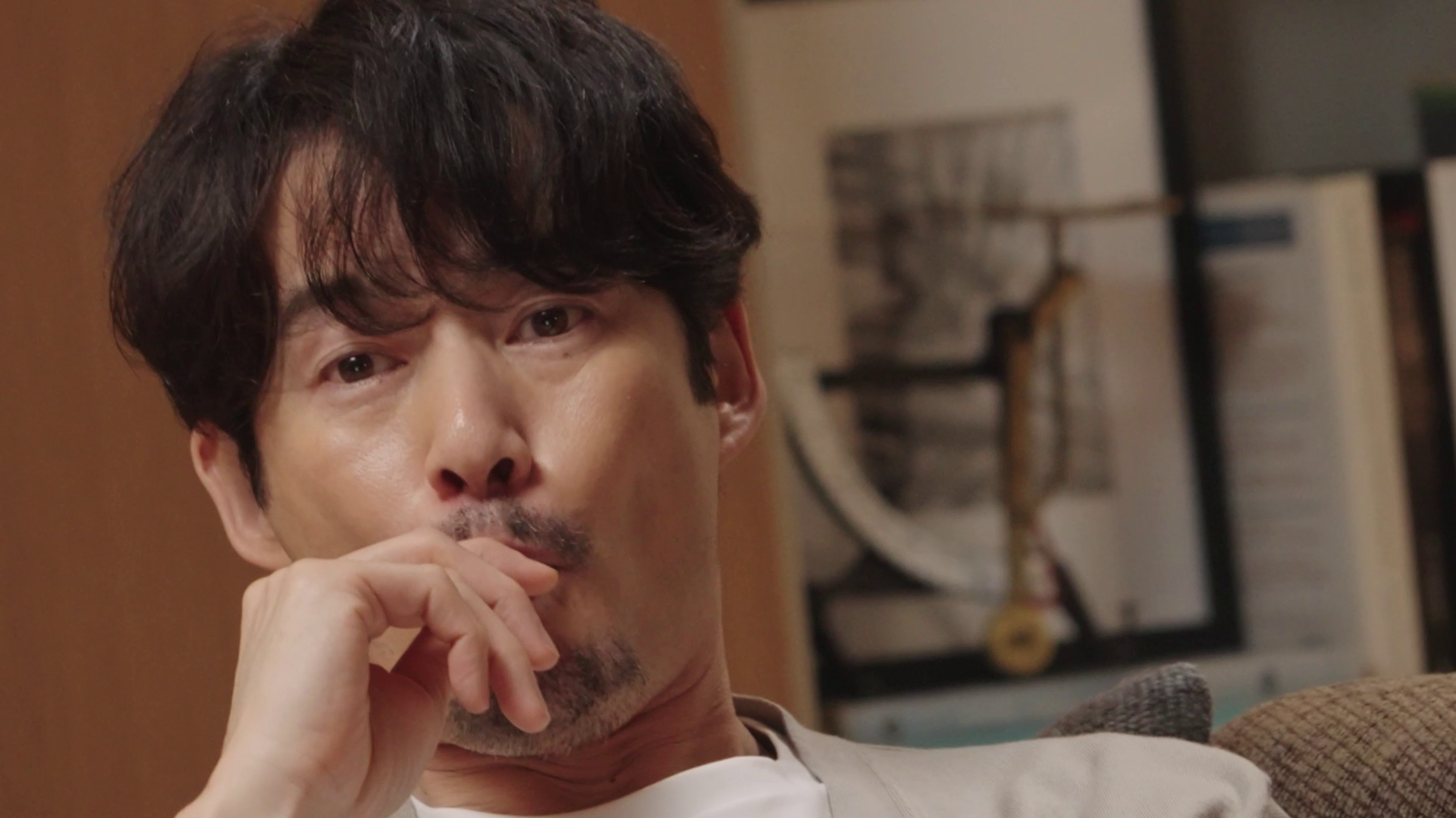 「PARM(パルム)」のパッケージをさっと開けるシーンでは、うまく開けられず、何度かトライを繰り返します。失敗するたびにがっくりと肩落とし、なんとも悔しそう。たった1カットですが、何度もテイクを重ねます。そして、何回目かのチャレンジで無事成功!きれいにパッケージが開いた瞬間、ご本人も驚きの表情。「カット!」の声がかかり、竹野内さんも思わずにっこり。監督から「バッチリです!」との声に、竹野内さんもアイコンタクトで、うれしそうに頷いていました。