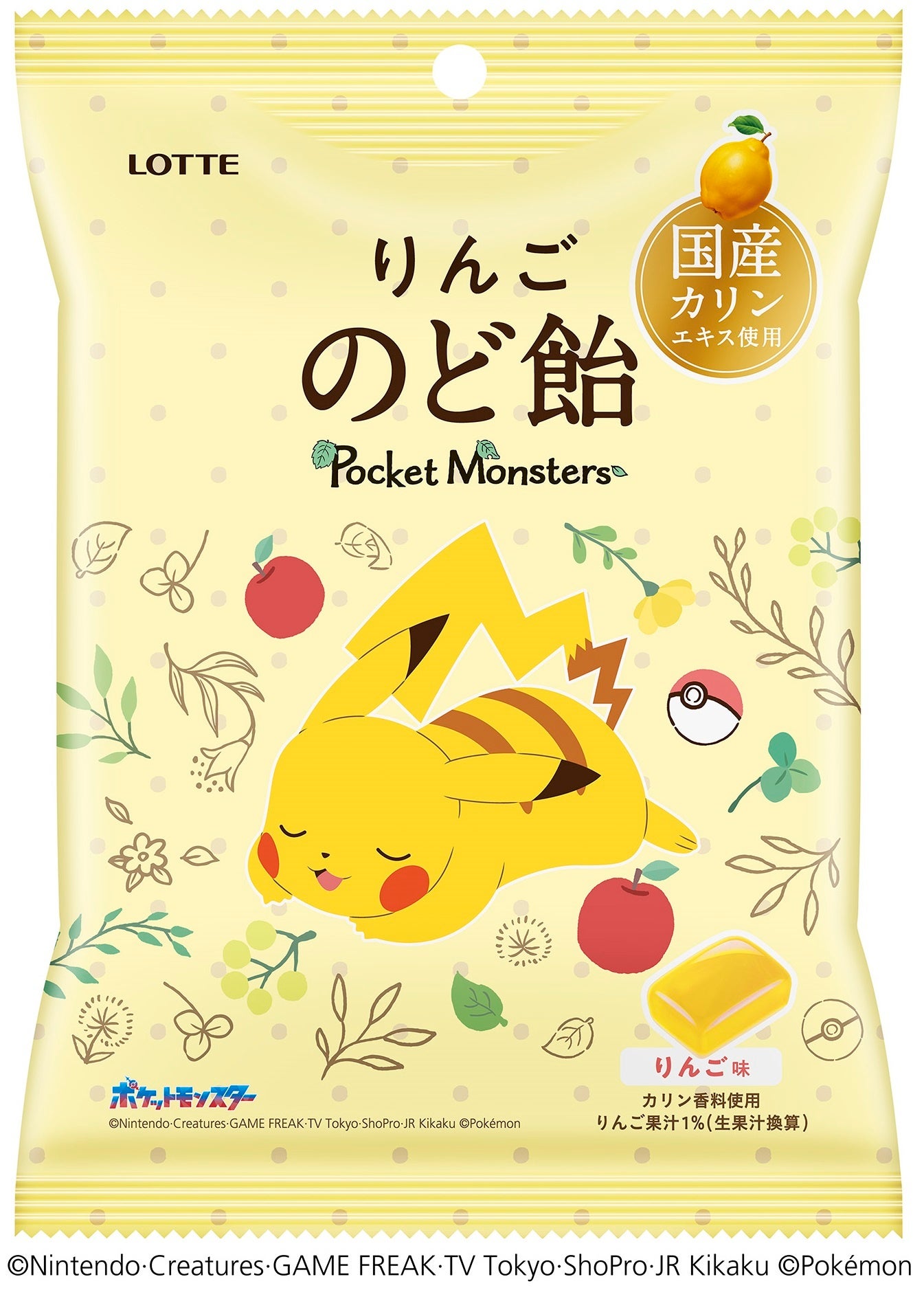 株式会社ロッテは10月10日(火)に「ポケモンりんごのど飴(袋)」を新発売します。この商品は優しいりんごの味わいが特長で、お子様から大人までどなたでも食べやすい品質になっています。国産カリンエキス、13種のハーブエキス、りんご果汁を配合。