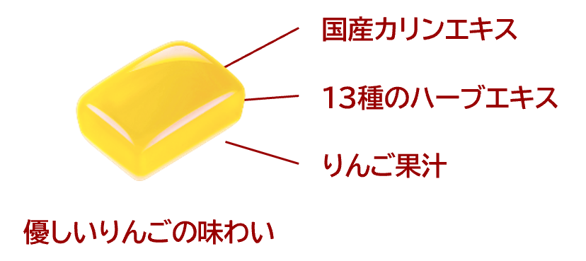 国産カリンエキス、13種のハーブエキス、りんご果汁配合。
