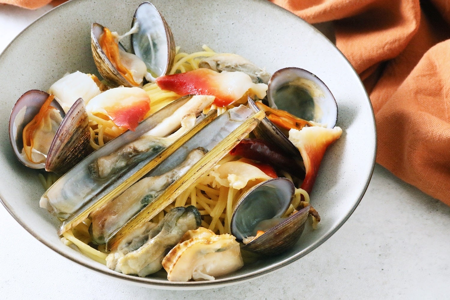 ●5種の貝ときのこのペペロンチーノ スパゲッティーニ 2090円(税込)
