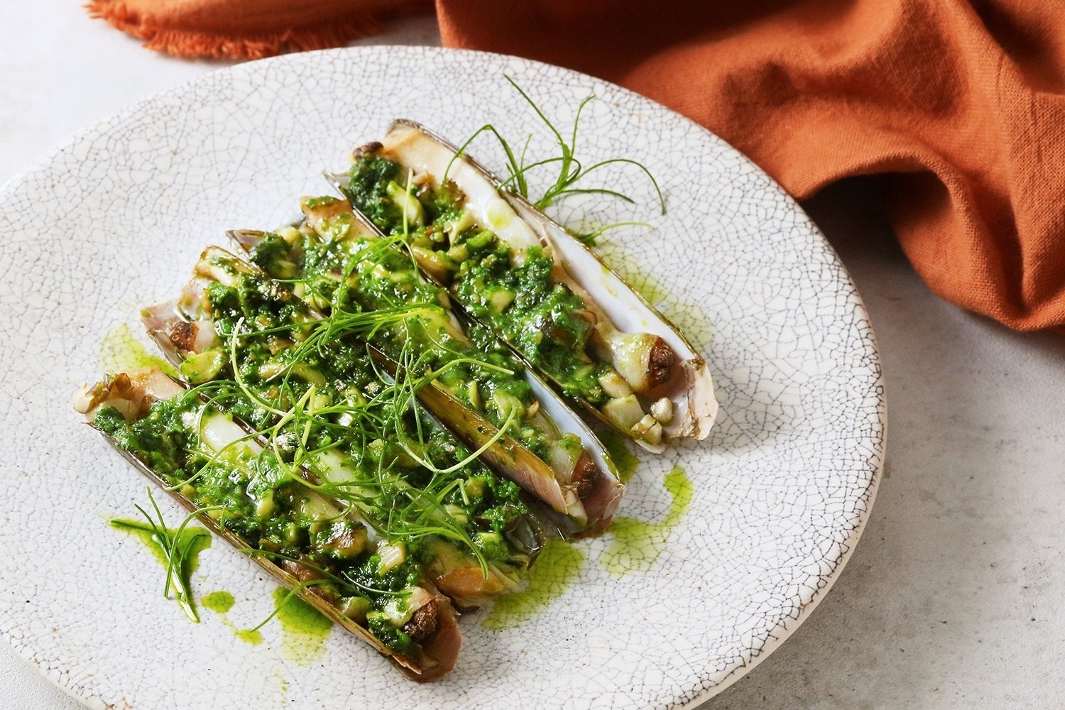 ●マテ貝ときのこのブルゴーニュ風ソテー 1300円(税込)