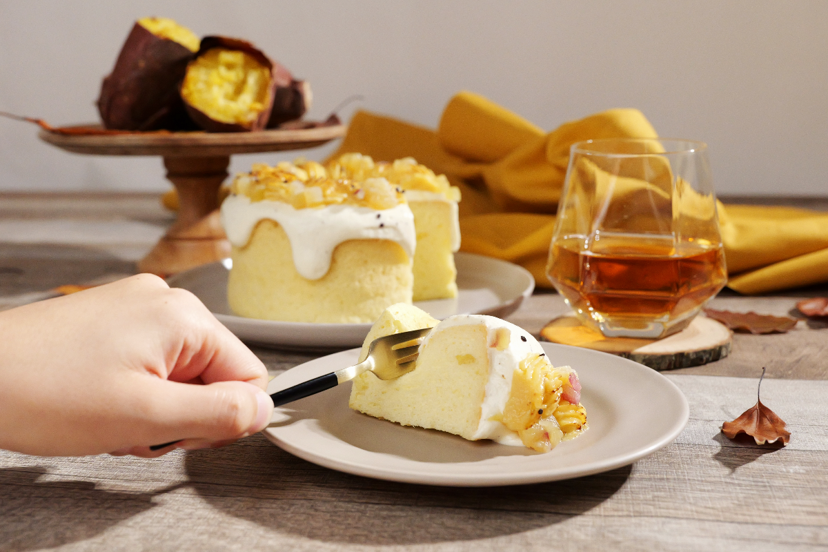 シフォン生地はさつまいもがふんわり香る、焼き芋風味。