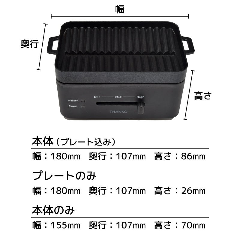 ・サイズ/幅180×高さ107×奥行86(mm) ・プレート面積/140×90(mm)
