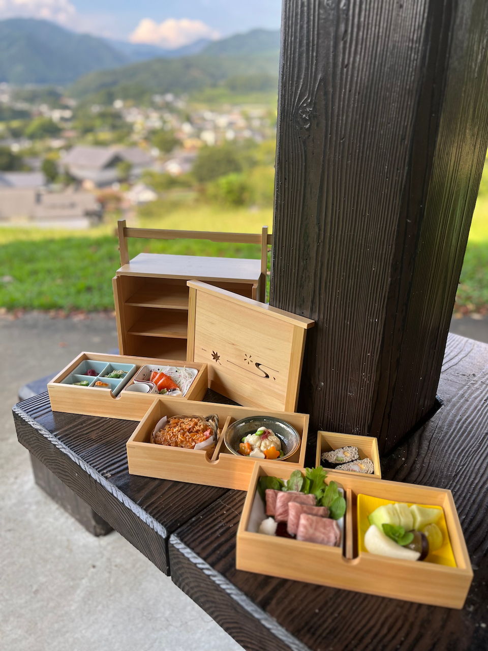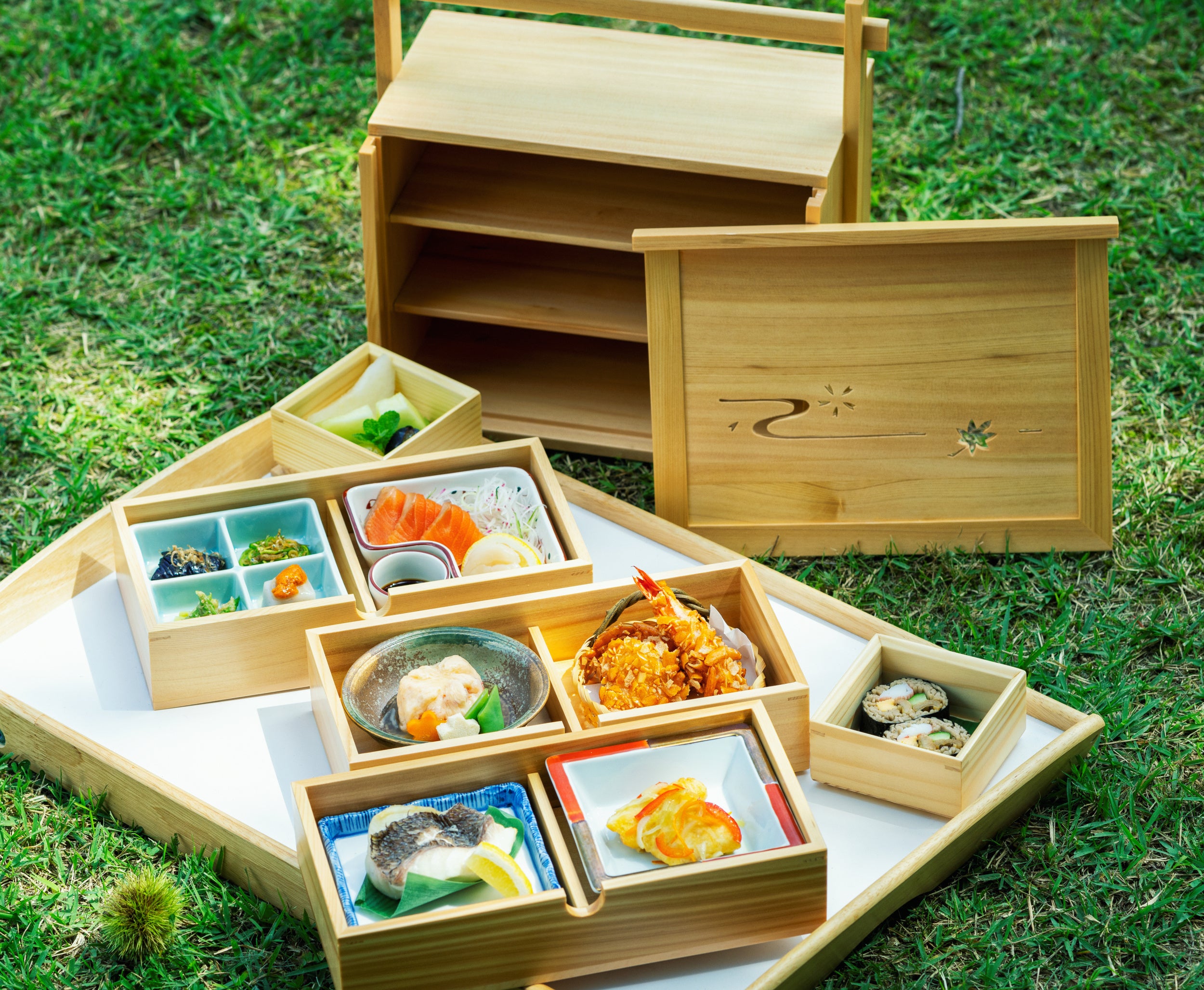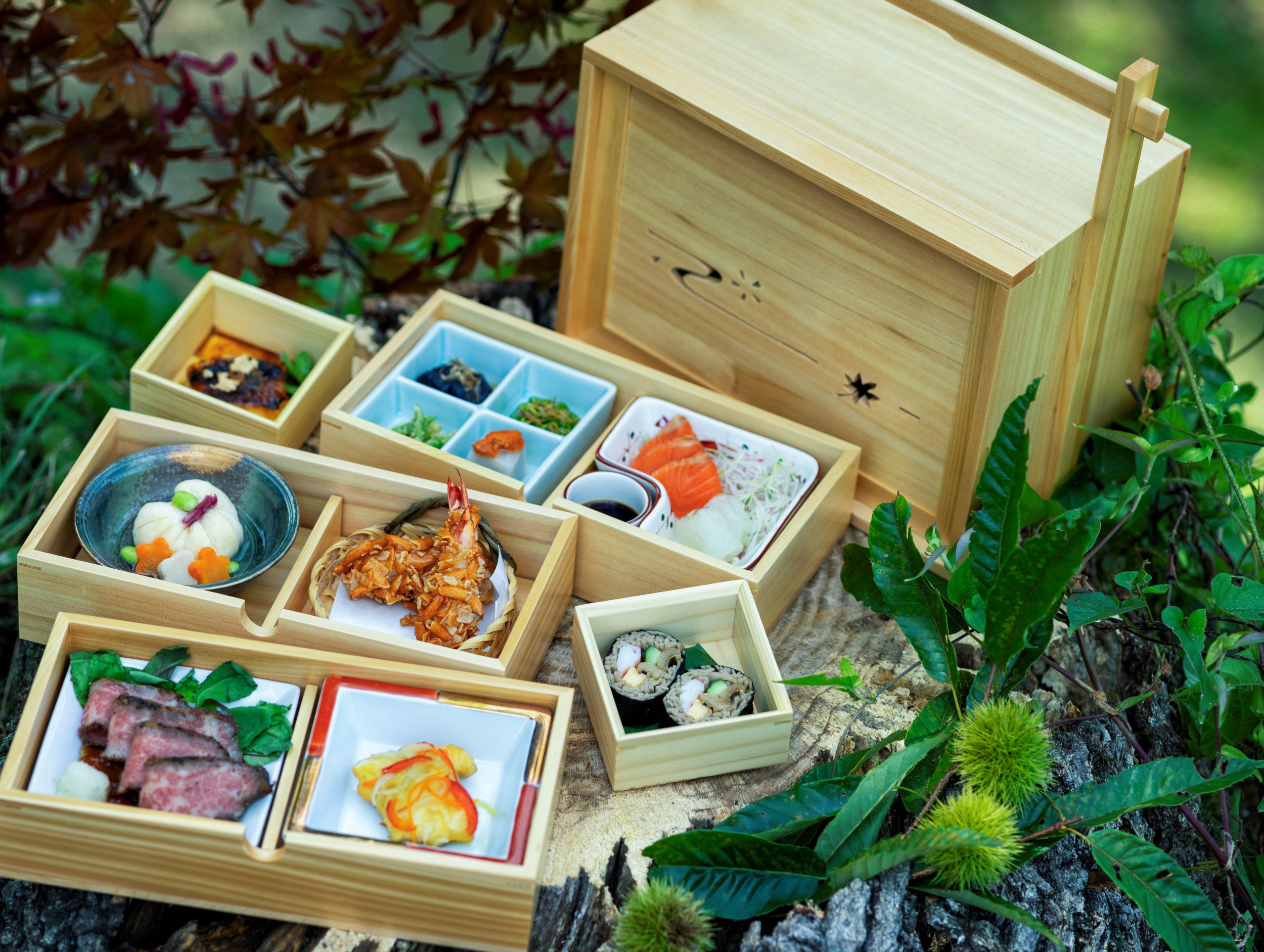 さて、この度「道の駅 川場田園プラザ」では、秋の味覚をふんだんに活用した「武尊(ほたか)懐石」」をご提供を開始します。武尊山に懐かれるような豊かな自然に恵まれた川場村。木々を巡り降り注ぐ風に乗って収穫の秋を迎えようとしています。この新たな自然の恵みを、一つ一つ大切にしつらえた野点(野点)弁当の様式で召し上がっていただき、お客様がお迎えになる新しい秋の訪れに彩を添えさせていただくのが「武尊懐石」です。