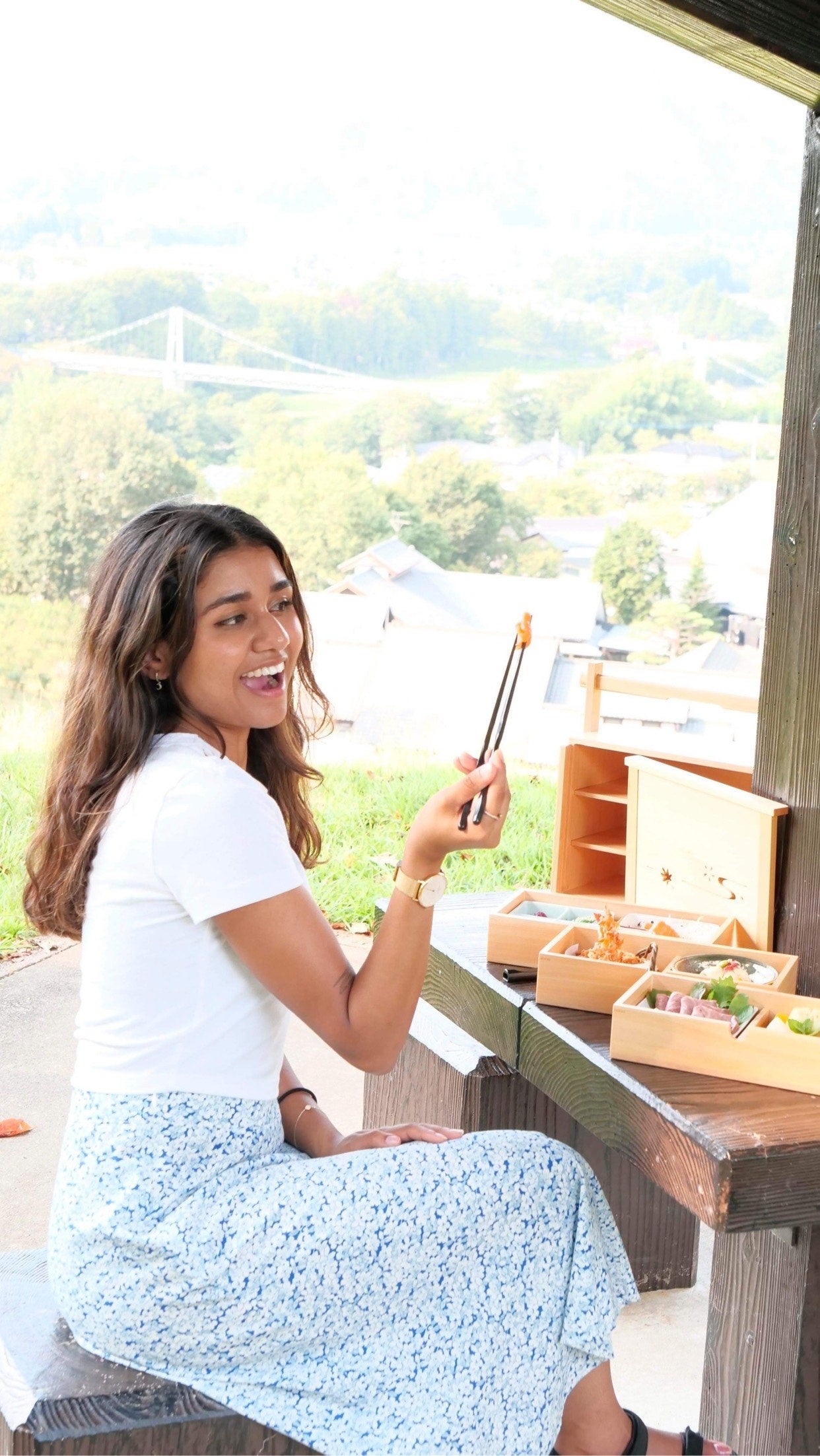 ※写真は「武尊懐石」を試食するインスタグラマーのアナンヤさん(https://www.instagram.com/p/CxFRyb0SkIJ/?img_index=1)