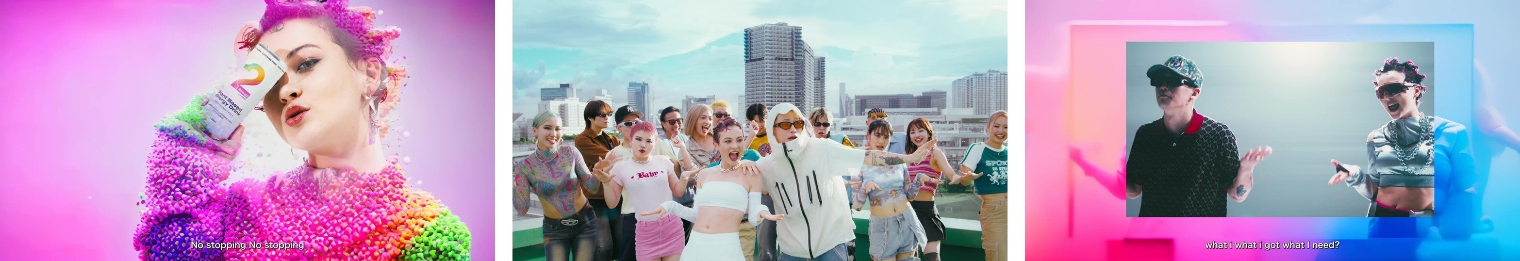 楽曲は「前向きさ」や、「アガる」シーンをテーマに制作。MVでは商品とリンクするようなカラフルさを生成AIを使って表現し、そこに$HOR1 WINBOY自身が振り付けを行ったポップでキャッチーなダンスを融合させ、2Energyが持つ世界観を楽曲・映像を通して実現しています。