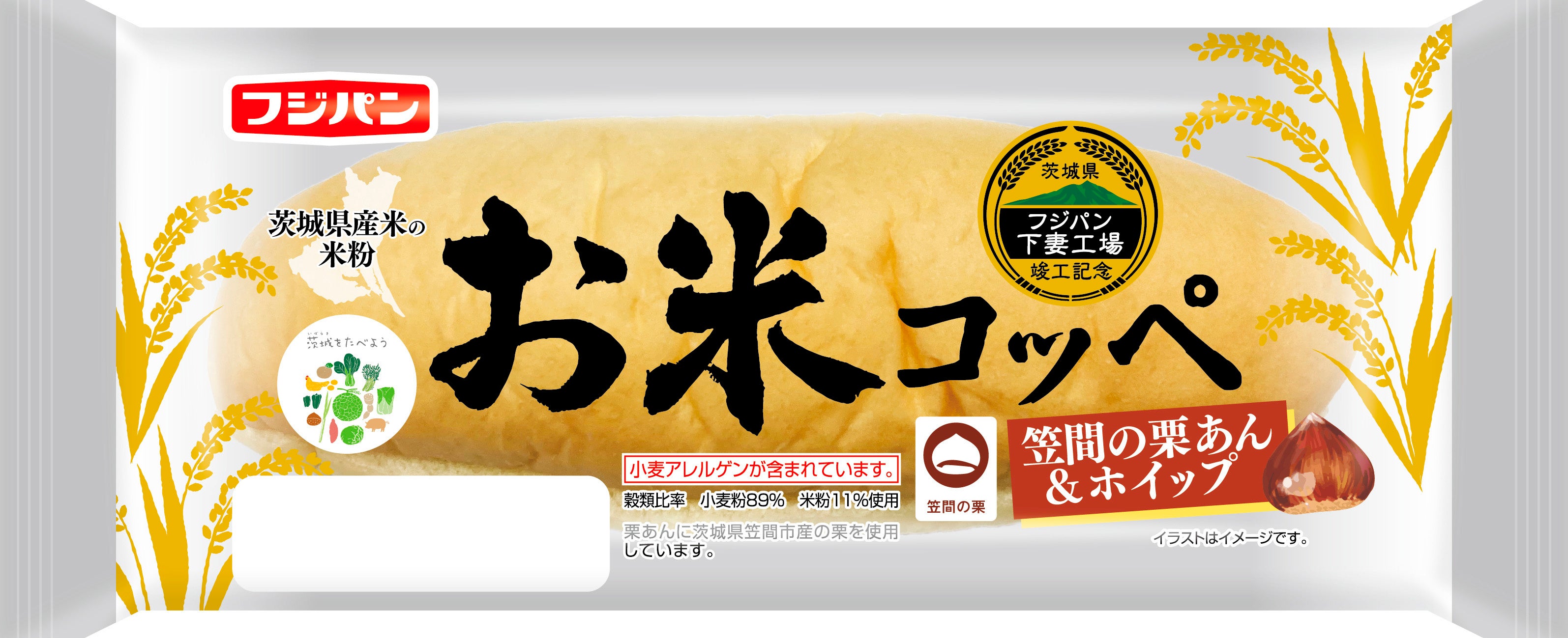 茨城県産米の米粉を使用したコッペパンに笠間の栗あんとホイップクリームをサンドしました。