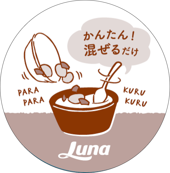 TOPCUPは、上部の”素材”と下部の”ヨーグルト”を合わせて楽しむ日本ルナのオリジナルブランドです。別添素材を、食べる直前にヨーグルトに入れることで、ザクザクとした食感を手軽に楽しめます。