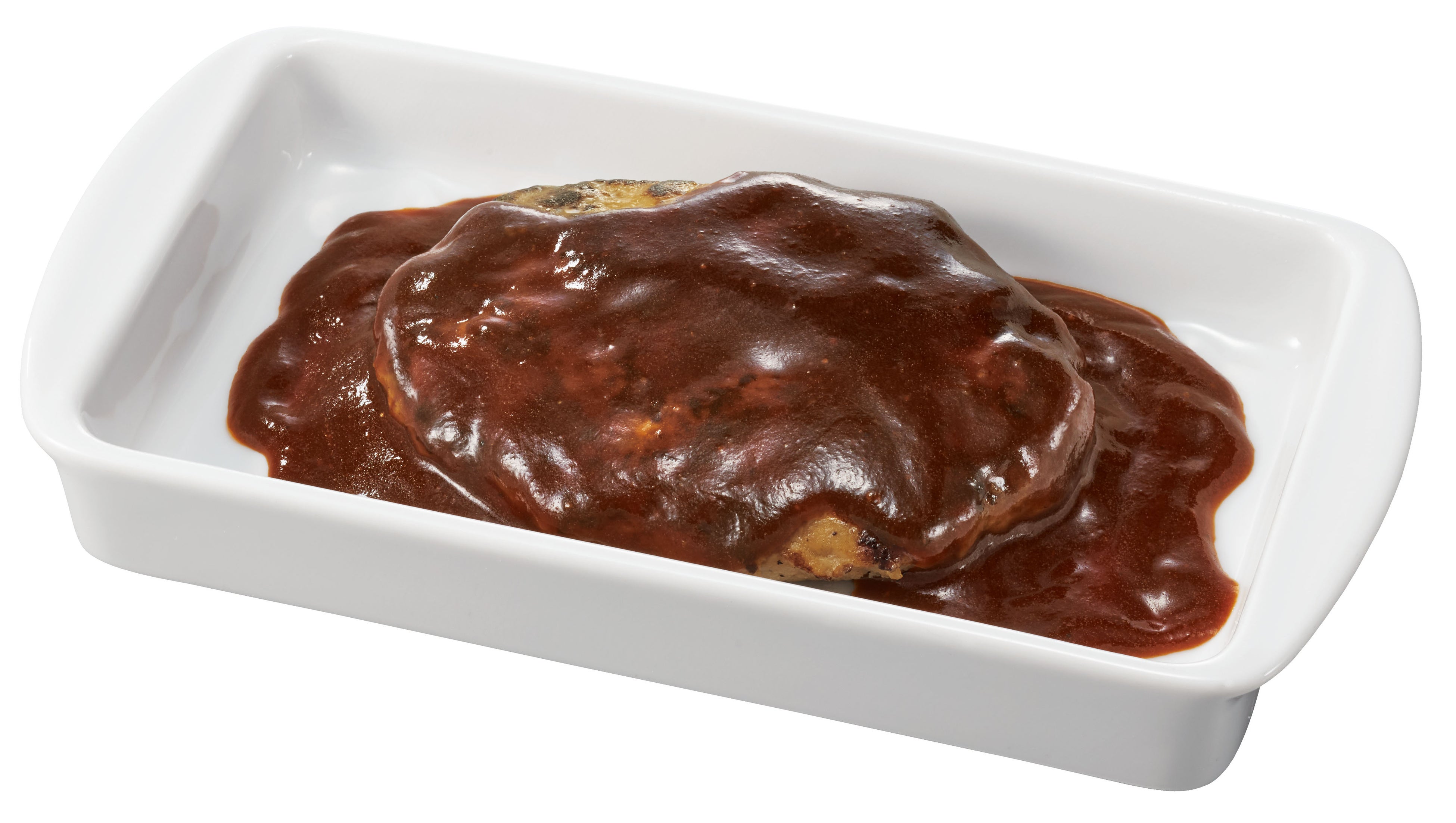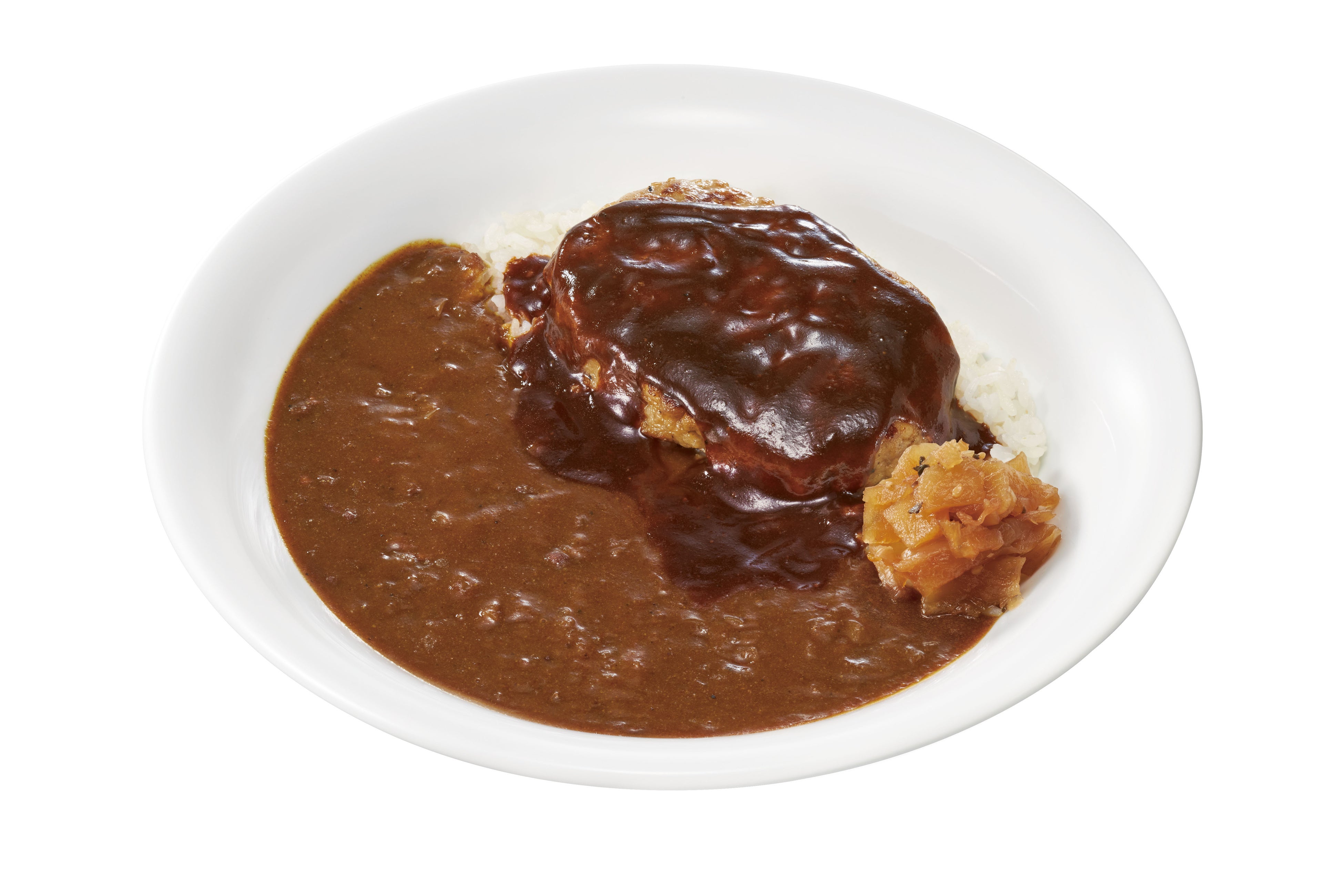 ふっくらジューシーな粗挽きハンバーグは食べ応え抜群。すき家のスパイシーなカレーや、丁寧に炊き上げたすき家こだわりのごはんにも合うよう、やさしい甘さが特長のデミグラスソースで王道のハンバーグに仕上げました。