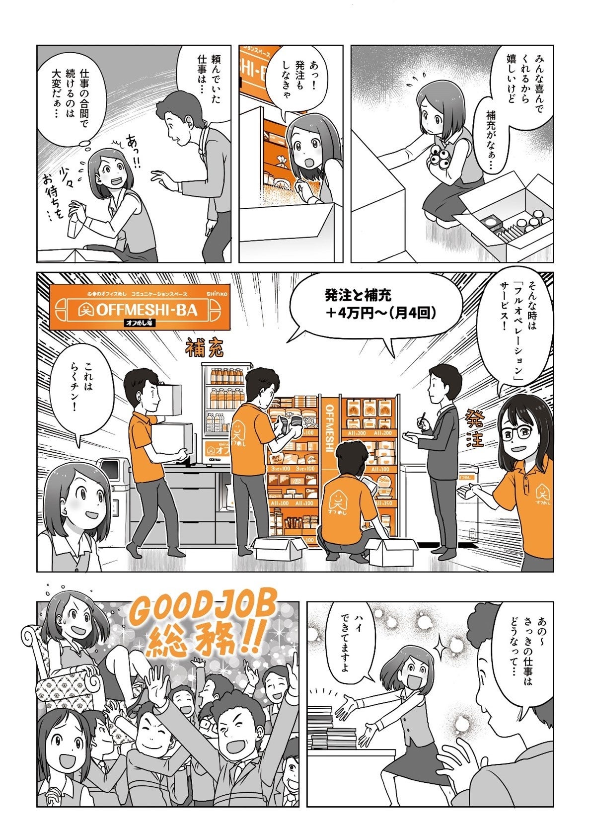 オフめし商品の選定、発注、補充を代行(月4回) |