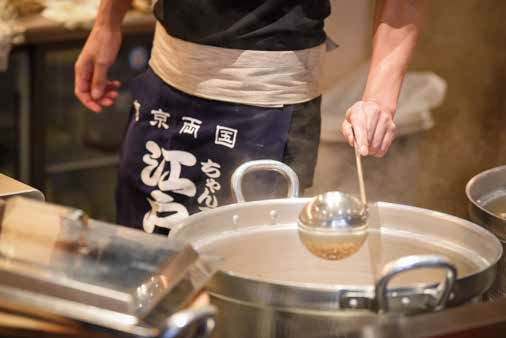 昭和49 年創業、元力士の創業者から伝統の味を受け継いできました。江戸沢では、ちゃんこ鍋本来のソップ(=スープ)炊きにこだわり、特に旨味の強い「老鶏(ひねどり」からスープを炊き出しています。味付けは、鶏がらスープの旨味と香りが感じられるように、独自の割合で配合した自慢の醤油味をはじめ、味噌味・塩味の3 つのスープをご用意しております。