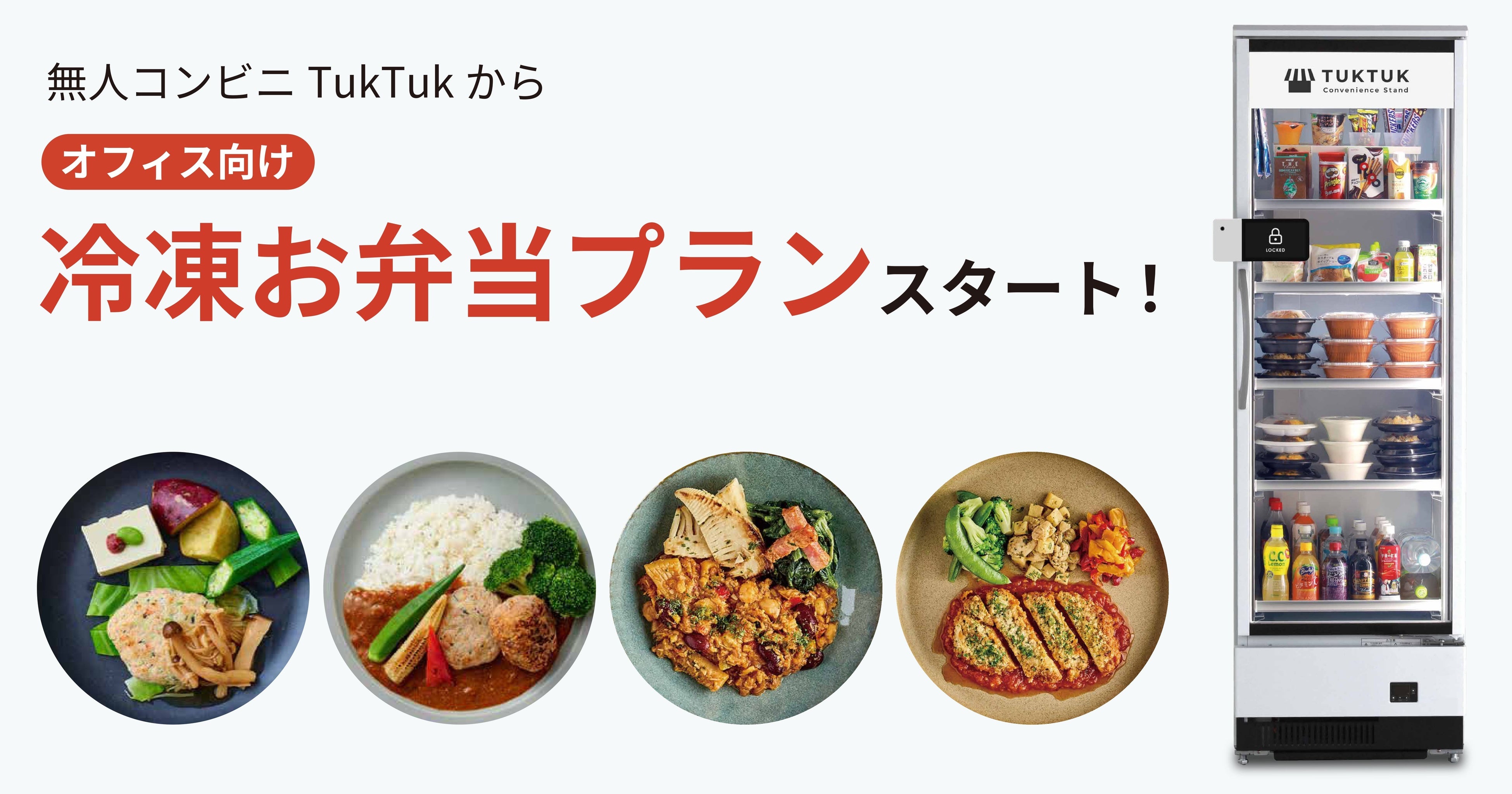 TukTukは2021年7月に提供開始以降、オフィスだけでなく、マンション、シェアハウス、学生寮などさまざまな場所に展開し好評いただいており、これまで約2万人の方にご利用いただいております。今回オフィスの総務人事の方々からご要望として多くいただいておりました、栄養バランスに優れ、美味しさにもこだわったお食事を従業員の方にお手頃な価格で提供できるサービスとして、冷凍お弁当プランを開始いたします。オフィスのあり方が変わりゆく中、従業員人数やオフィスの形態など各社に合わせた法人プランを提案させていただきます。TukTukでは本サービスを通じて、従業員の健康と働きやすさをサポートし、出社促進、従業員満足度の向上、健康経営などの企業課題に貢献いたします。