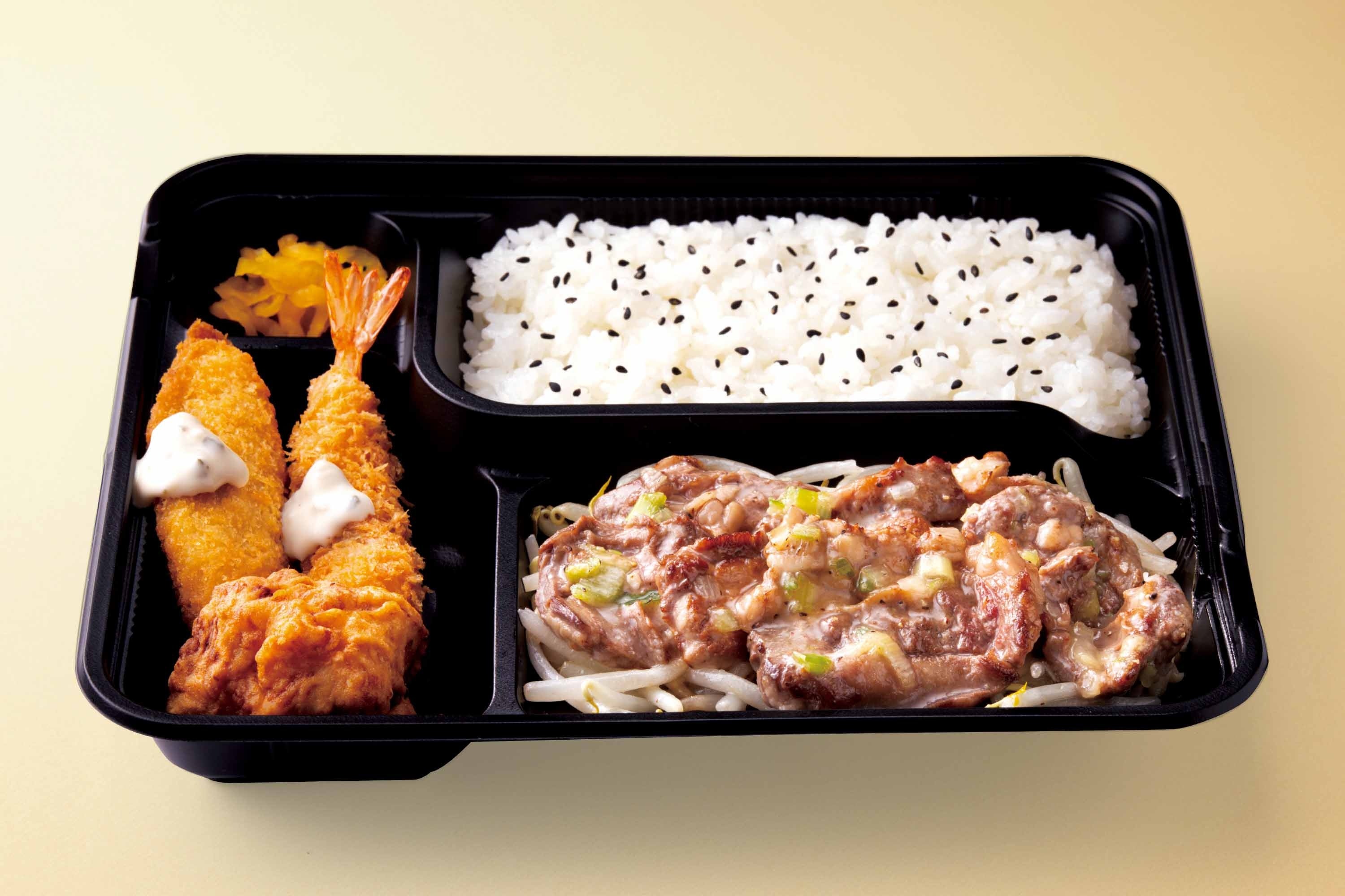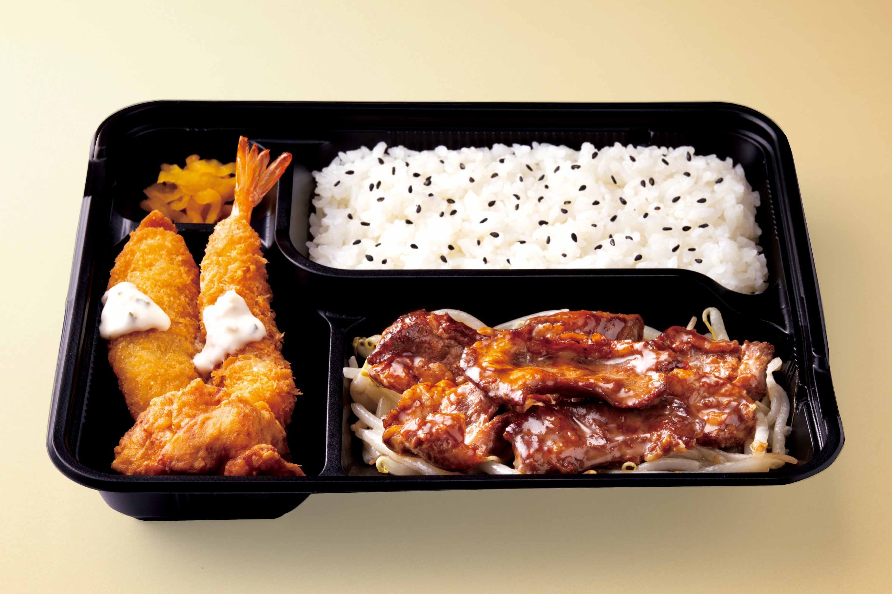 エビフライと唐揚げとミニ白身フライがセットになった「Dxブリスケットカルビ焼肉弁当」もご用意しております。