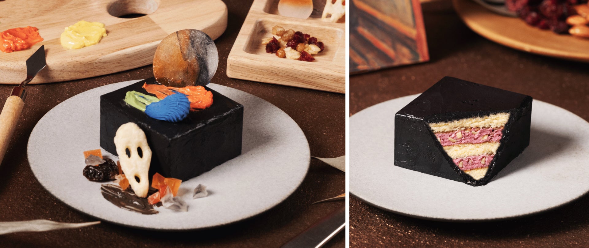 同時期にはメディアでも多数取り上げて頂いている人気メニュー「キャンバスケーキ」も『叫び』仕様でご提供いたします。