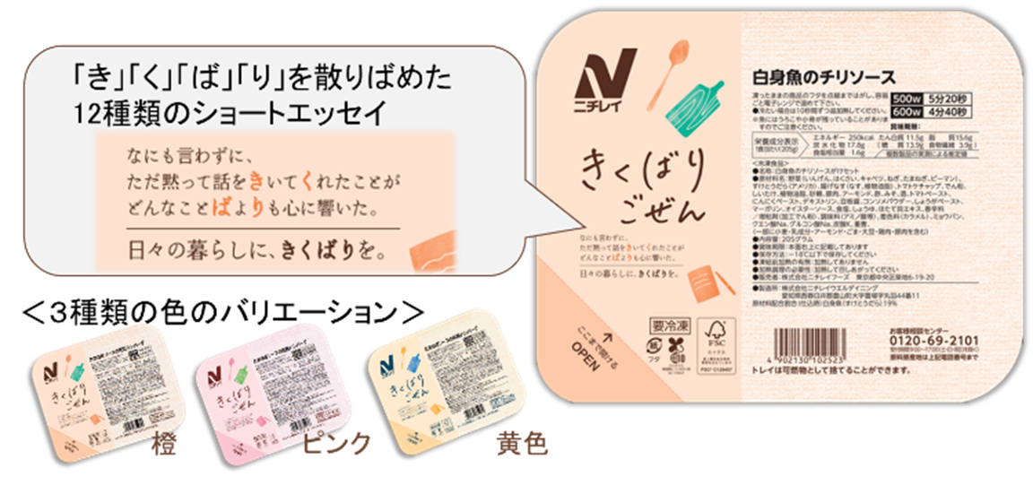 同時に、従来のメインユーザーであるシニア層に加え、若年層など幅広いお客様への利用拡大を視野に、シリーズ名を「気くばり御膳®」から、ひらがなの「きくばりごぜん™」へ順次変更し、デザインもより優しく親しみやすいものへ変更いたします。