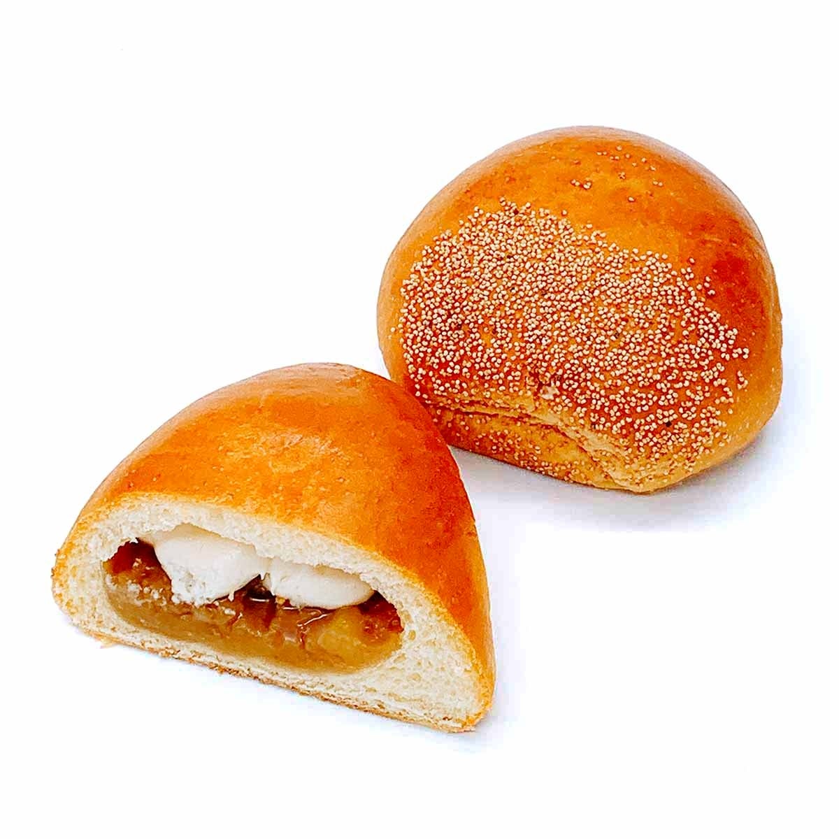 マッシュポテトを練り込んだしっとり、やわらかな生地に玉ねぎシートを折り込み、チョップドオニオンと