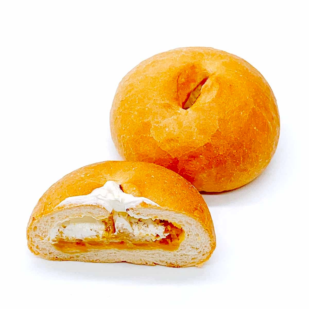 ホイップしたバターに負けない、かぼちゃの風味をしっかり感じる餡を包み、ホイップした無塩バターをしぼりました。生地に酒種を入れる事で、よりふっくらとボリュームのある生地になりました。