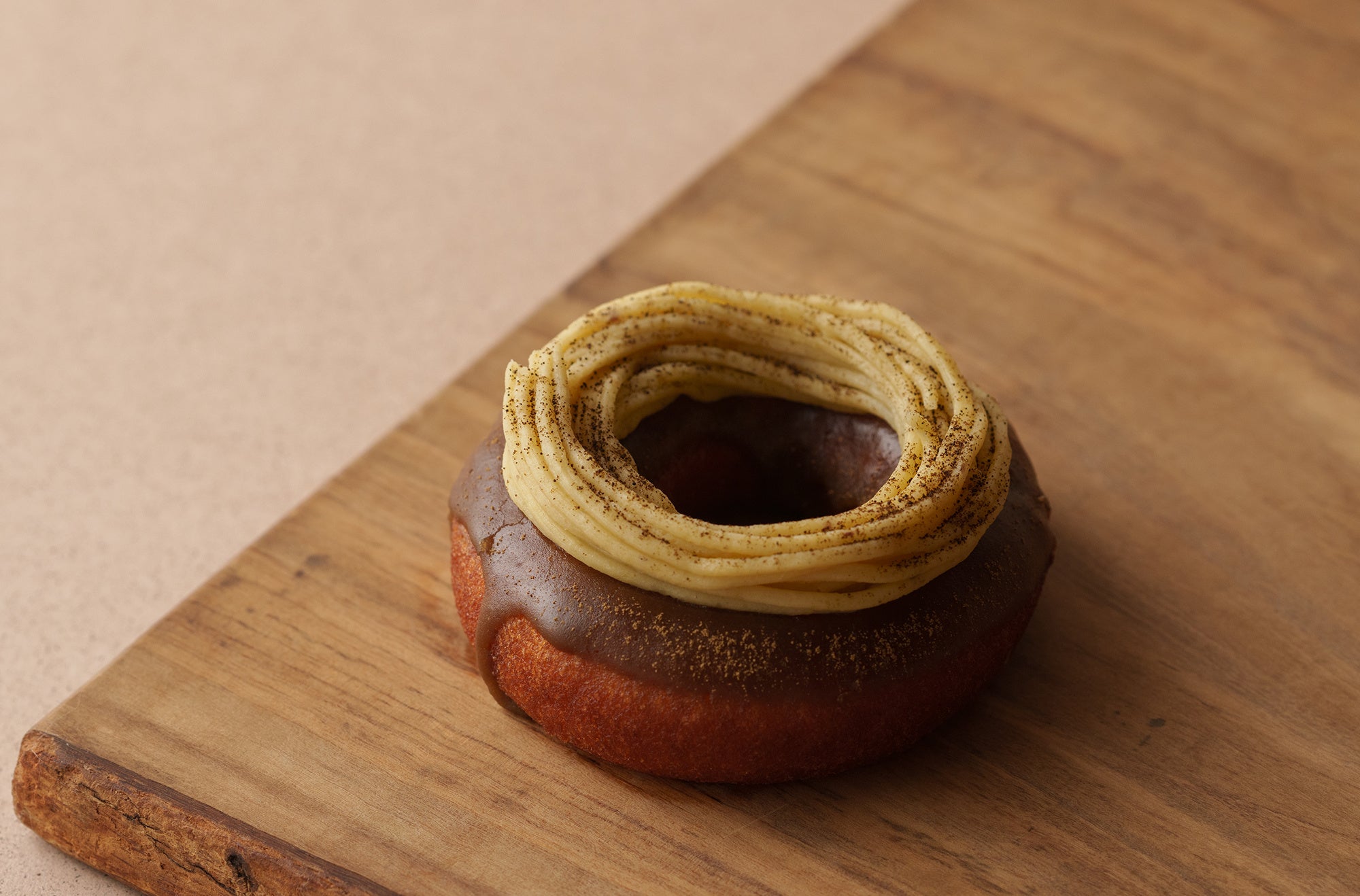 今秋は『taste of japanese autumn』をテーマに、日本の秋の味覚が堪能できるドーナツメニューをラインアップいたしました。koe donutsの看板メニュー「ドーナツメルト」は、毎年好評いただいているモンブラン仕様がリッチにバージョンアップして登場。最高級の丹波栗をベースにココアクランブルとメレンゲをサンドしました。カシスソースの酸味がバランスの良いケーキのようなメルトで、より濃厚な味わいをお楽しみいただけます。