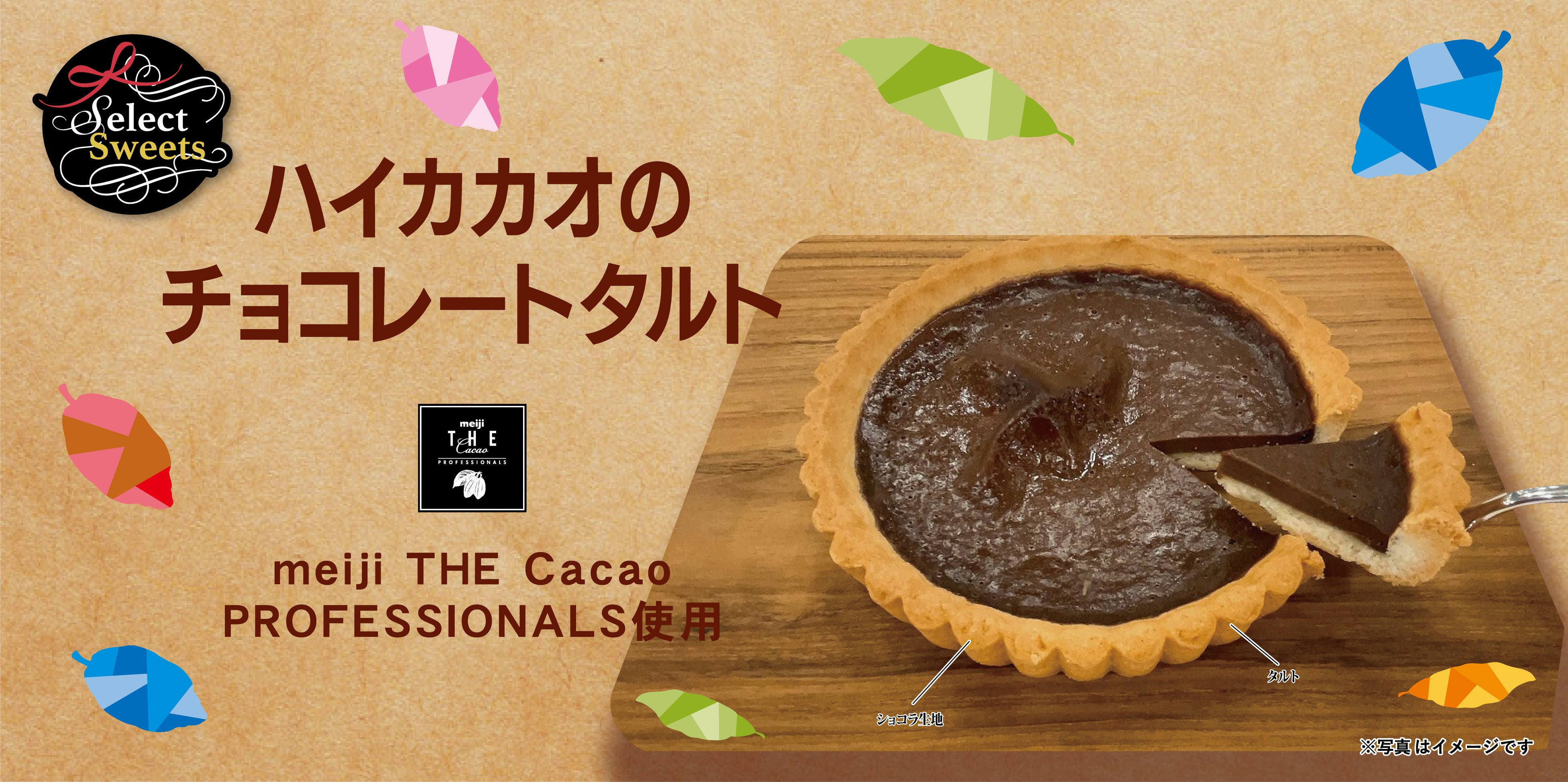 食欲の季節ともいえる秋は、「濃厚なチョコレートを食べたい!」という方が増える時期です。こうしたなか当社は、カカオの個性を最大限引き出したBEAN to BARチョコレート「meiji THE Cacao PROFESSIONALS」を使用した、ビターで濃厚なタルトをご提供し、秋のリラックスタイムにほっと感じられる癒しを、スイーツを通じてお届けします。
