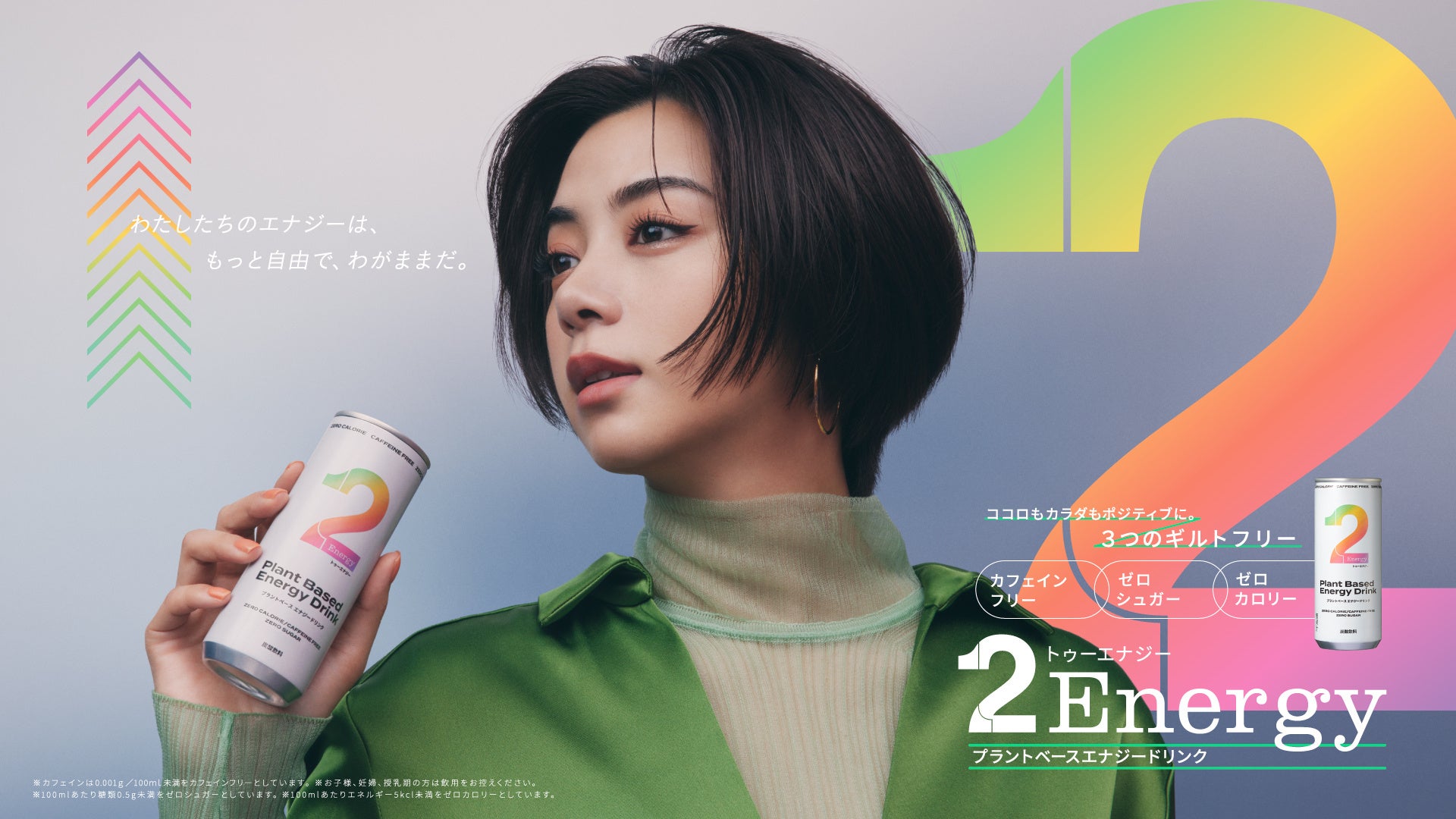 今回、第二弾商品ではプラントベースエナジードリンク「2Energy」を発売いたします。カフェインフリー※1・ゼロカロリー※2・ゼロシュガー※3 という3つのギルトフリーを叶えることで、ココロにもカラダにもポジティブで、いつでも無理せずジブンらしいスタイルを楽しめます。また、今まで飲用されていた頑張るシーンだけではない、幅広いシーンで飲むことができ、新しい選択肢となるエナジードリンクになっています。