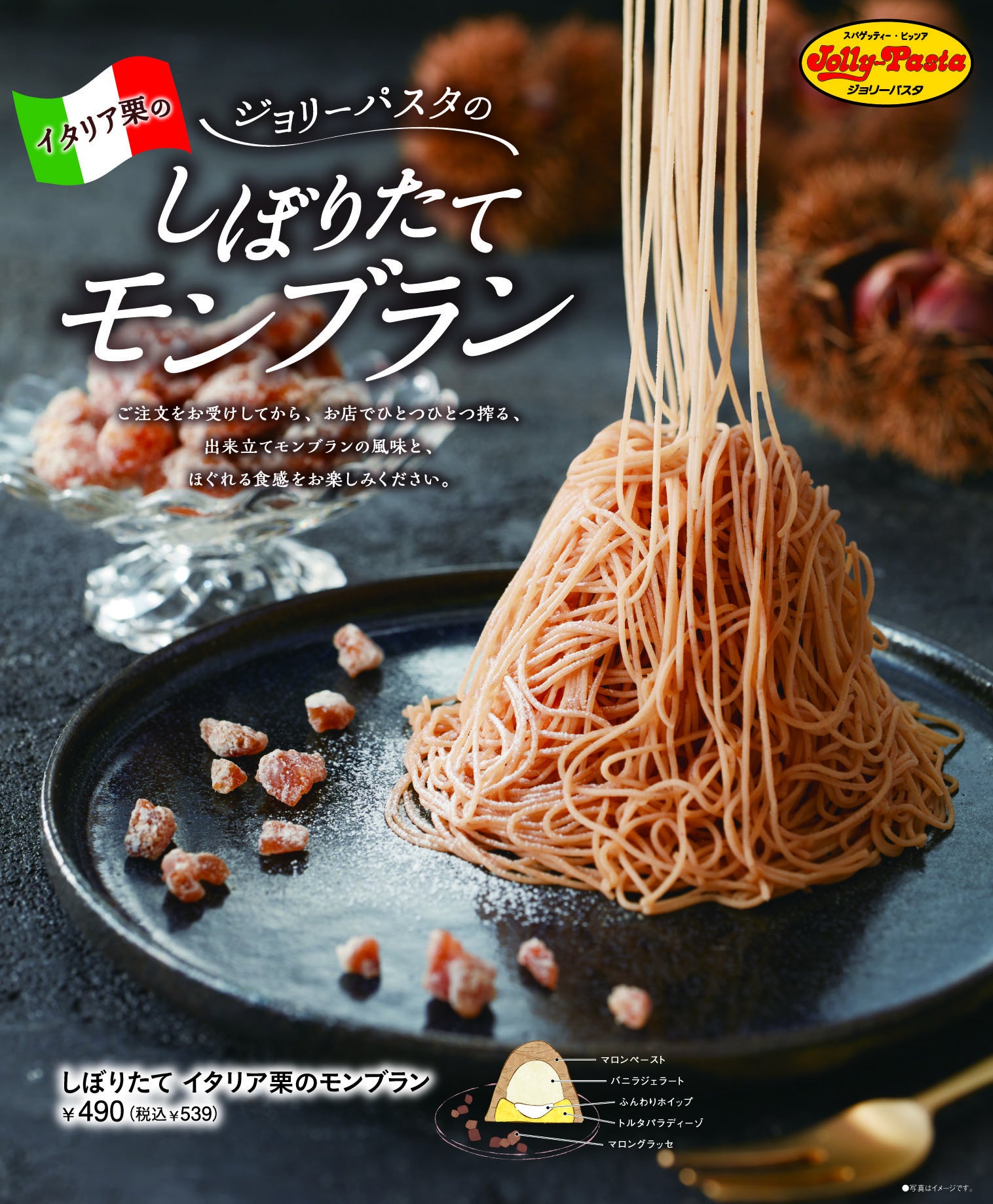 株式会社ジョリーパスタ(代表取締役社長:南 哲史 本社:東京都港区)が展開するパスタ専門店「ジョリーパスタ」は10月5日(木)より、「しぼりたて イタリア栗のモンブラン」を新発売します。