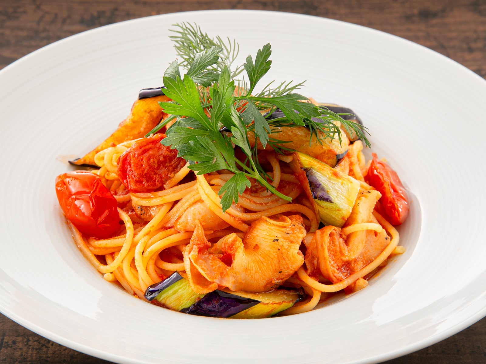 【つぶ貝と茄子のアラビアータ】889円(税込978円)