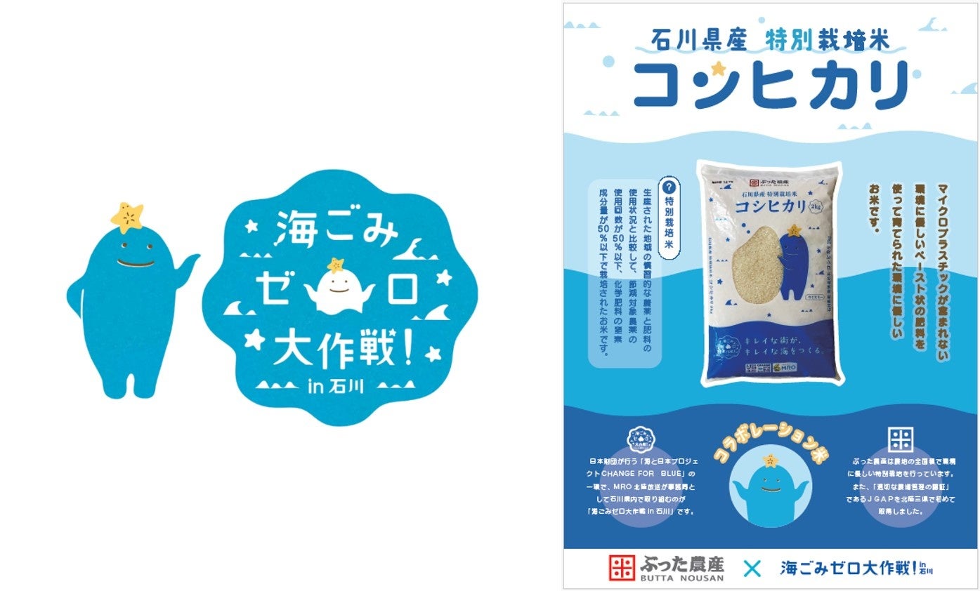 県内各地での清掃活動や県民への啓発、テレビ番組の制作など、海洋ごみ削減に向けてさまざまな事業を展開する「海ごみゼロ大作戦 in 石川」。農薬と化学肥料を極力使用しない環境負荷の少ない特別栽培米を生産する「ぶった農産」とタッグを組み、環境保全の大切さを発信していきます。