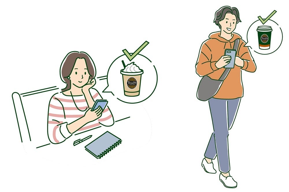 タリーズコーヒーでは、お客様のスマートフォンよりタリーズ公式アプリを通して、店舗選択・商品注文・決済を行い、指定店舗にてレジに並ばずに商品を受け取れるサービス「モバイルオーダー」を導入しております。