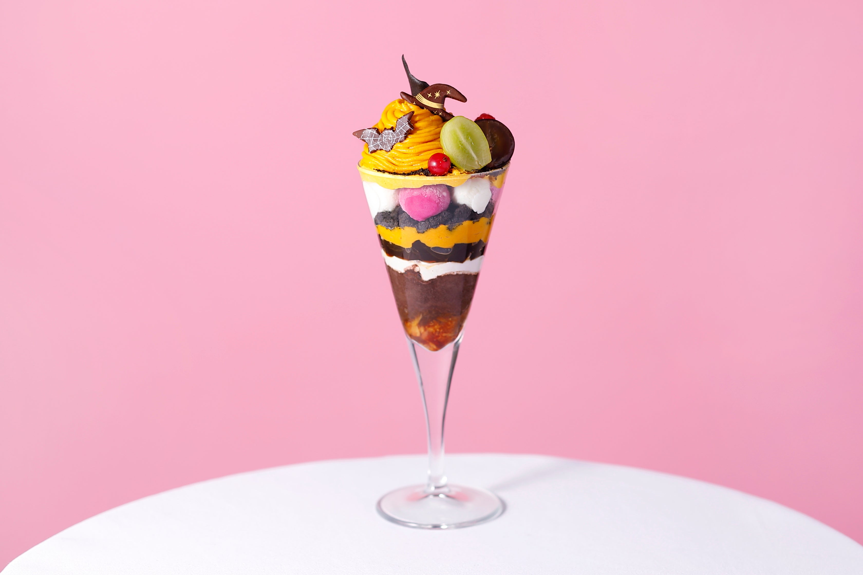 やさしい甘味のかぼちゃクリームにシナモン香るジェラートと紫芋のソルベを合わせました。コーヒーやチョコレートの苦味がアクセントになった少し大人の味わいです。ザ・ハラジュクオリジナルのハロウィンパフェをご賞味ください。