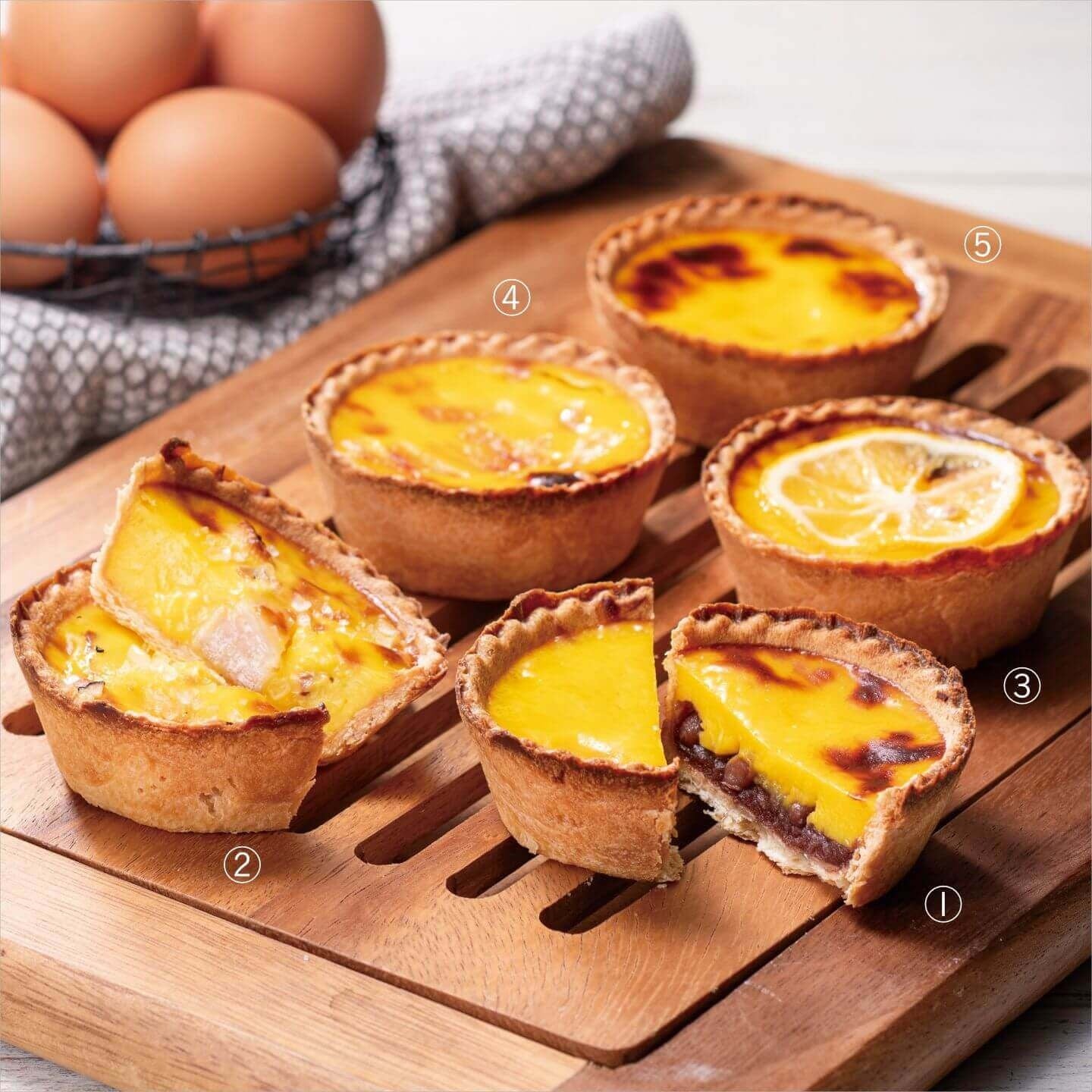①あんことあずき ②トリュフ塩とベーコン ③シロップレモン ④チーズ 1個 各・税込460円 ⑤プレーン 1個 税込420円