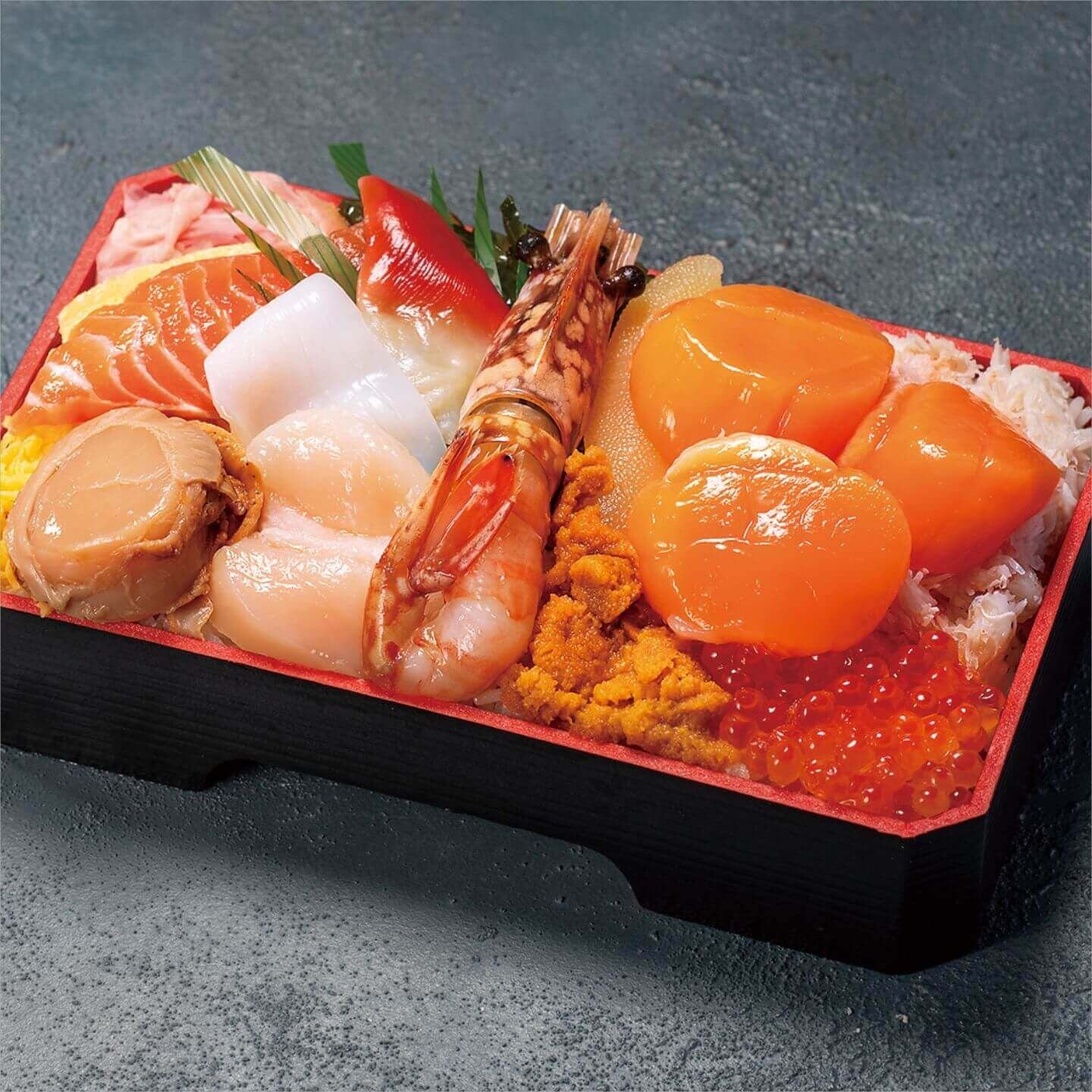 他にもボタン海老やウニ、カニ、いくらなど北海道の海の幸を贅沢に11種使用した豪華海鮮弁当です。